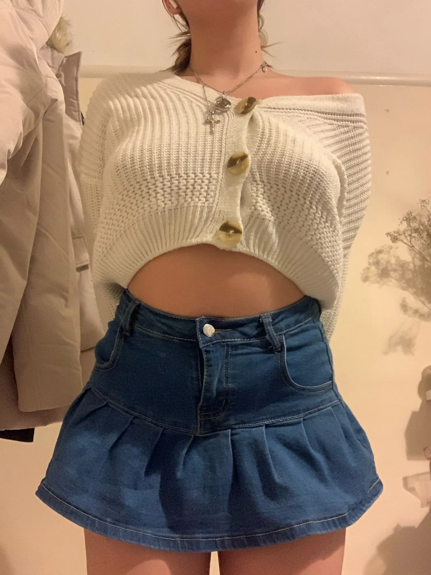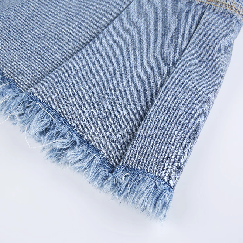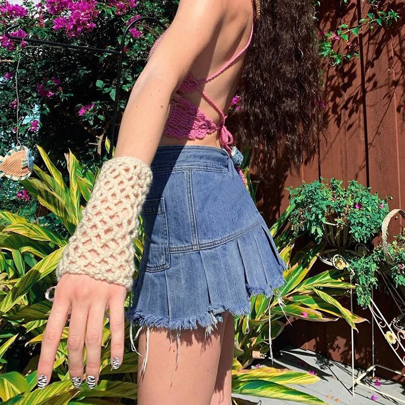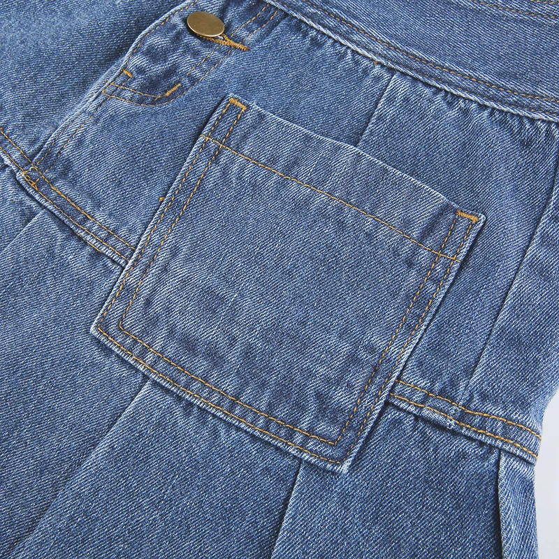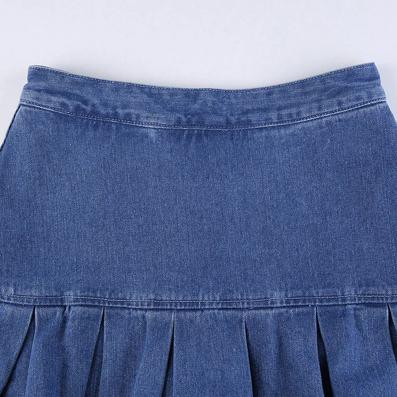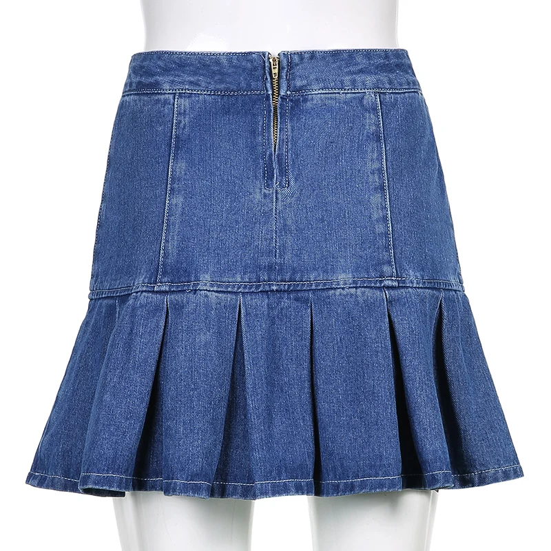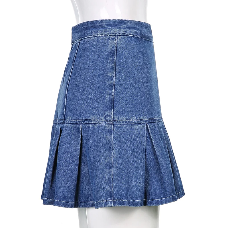 Женская джинсовая мини-юбка, плиссированная юбка с высокой талией, узкая голубая юбка на молнии в уличном стиле в стиле 90-х, Y2K, лето