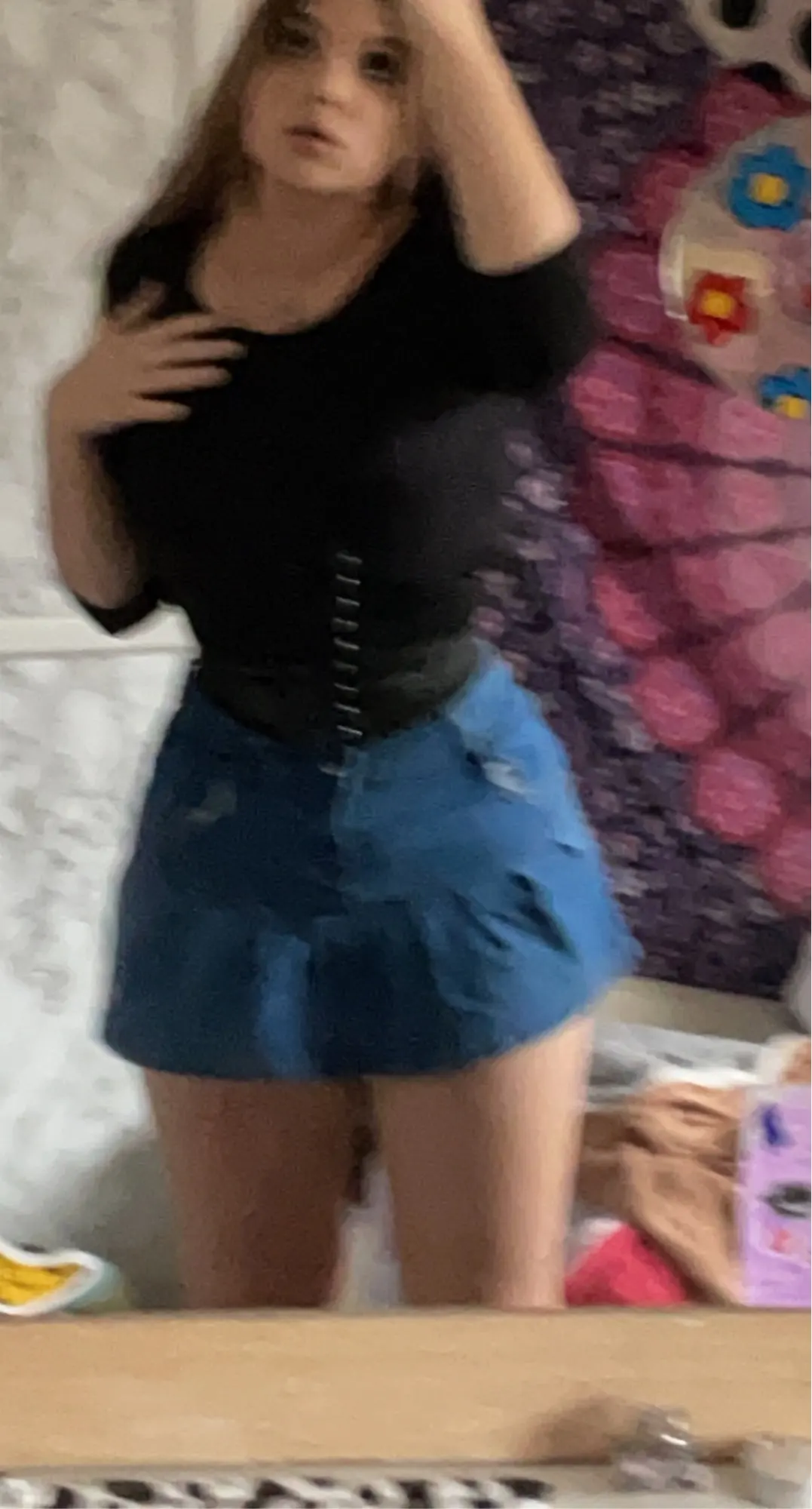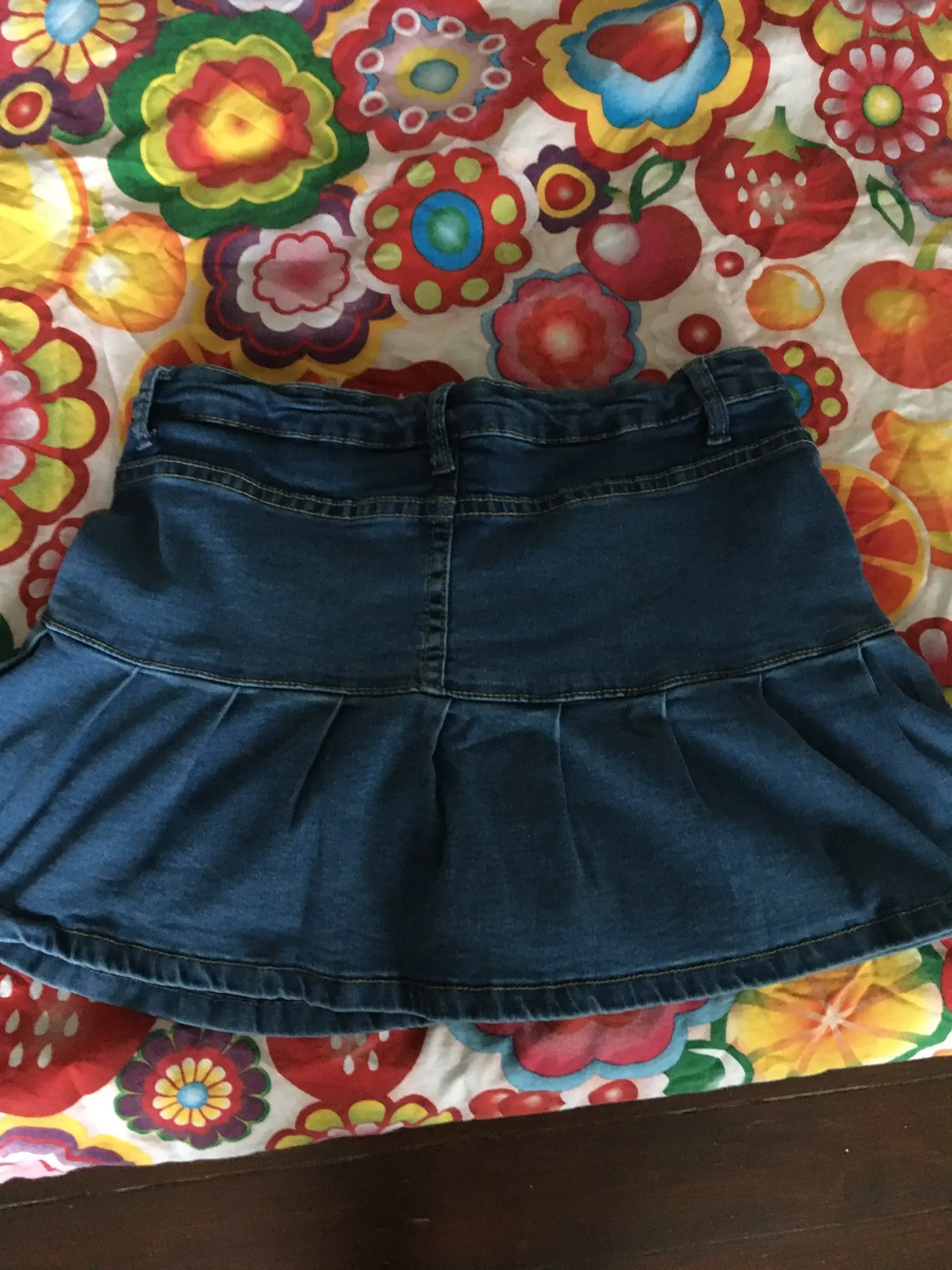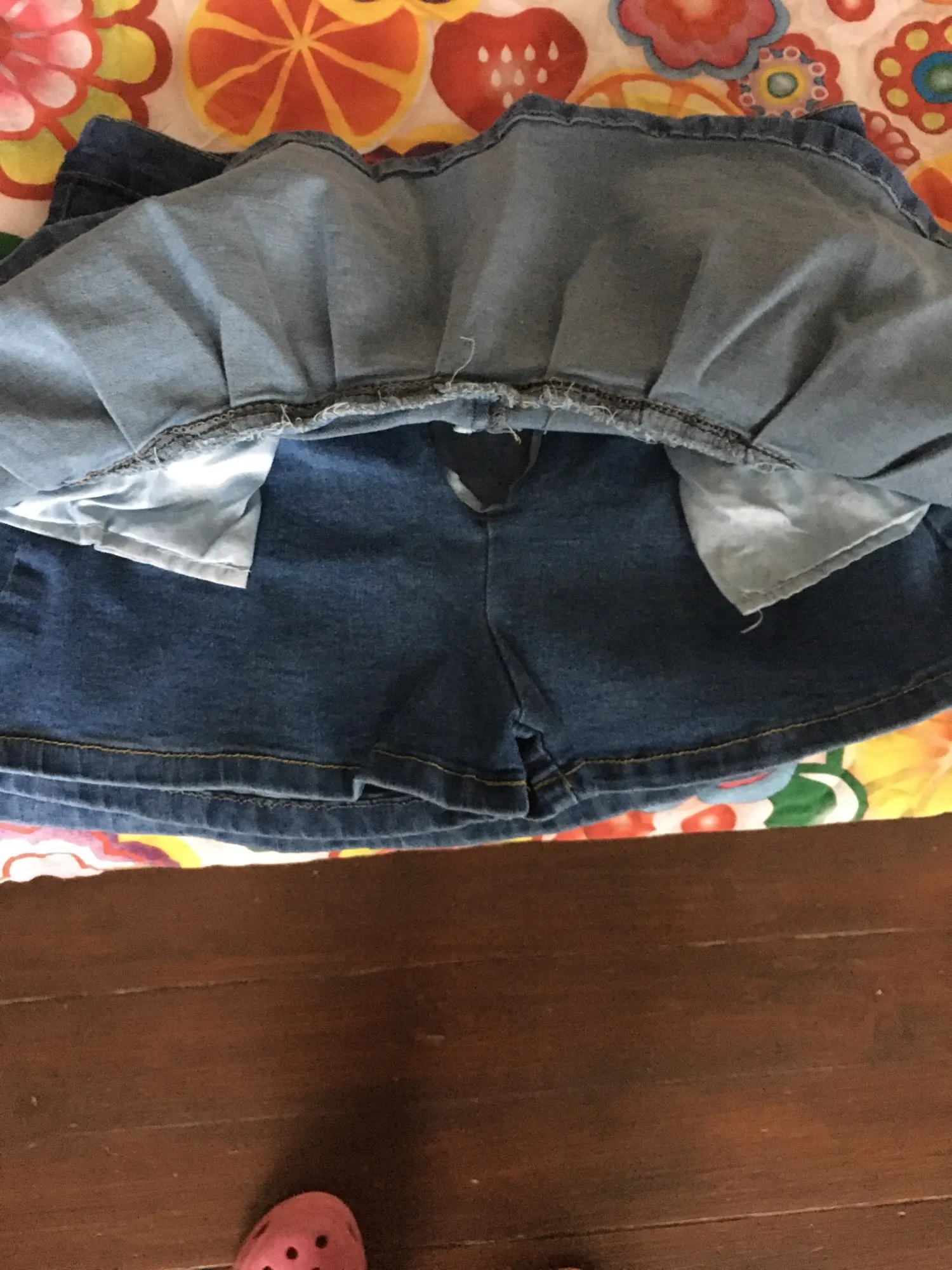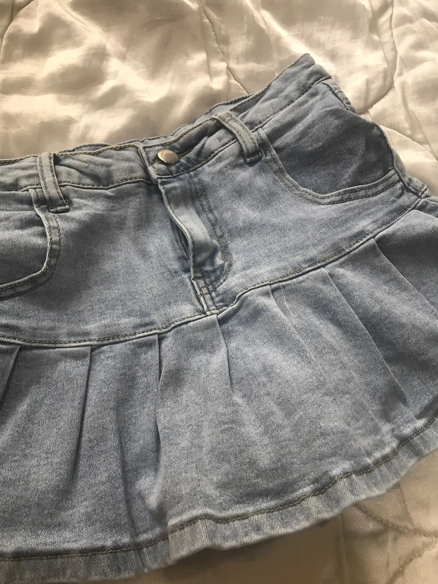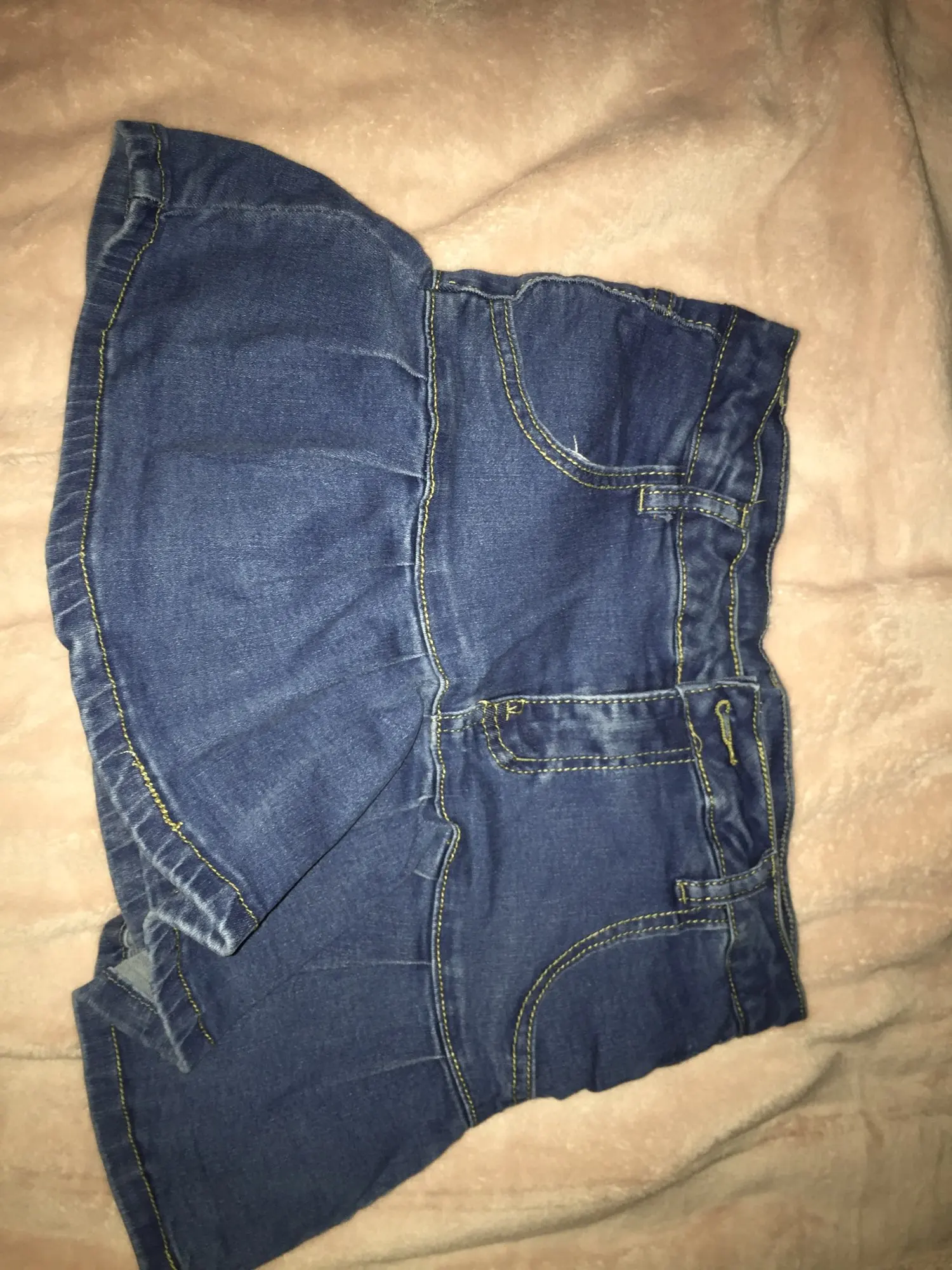 It’s so cute it kinda fit weird in the back, like there was this gap but it could just be my body shape. it’s denim and the fabric is kinda stretchy. It’s also super short to be honest but it comes with shorts. It’s a little high waisted, it ended at the middle of my belly button. The button is super flimsy and the slit for the button is small but you could just cut it open more. For reference I’m 5’6 120 pounds 27” waist and 35” hips