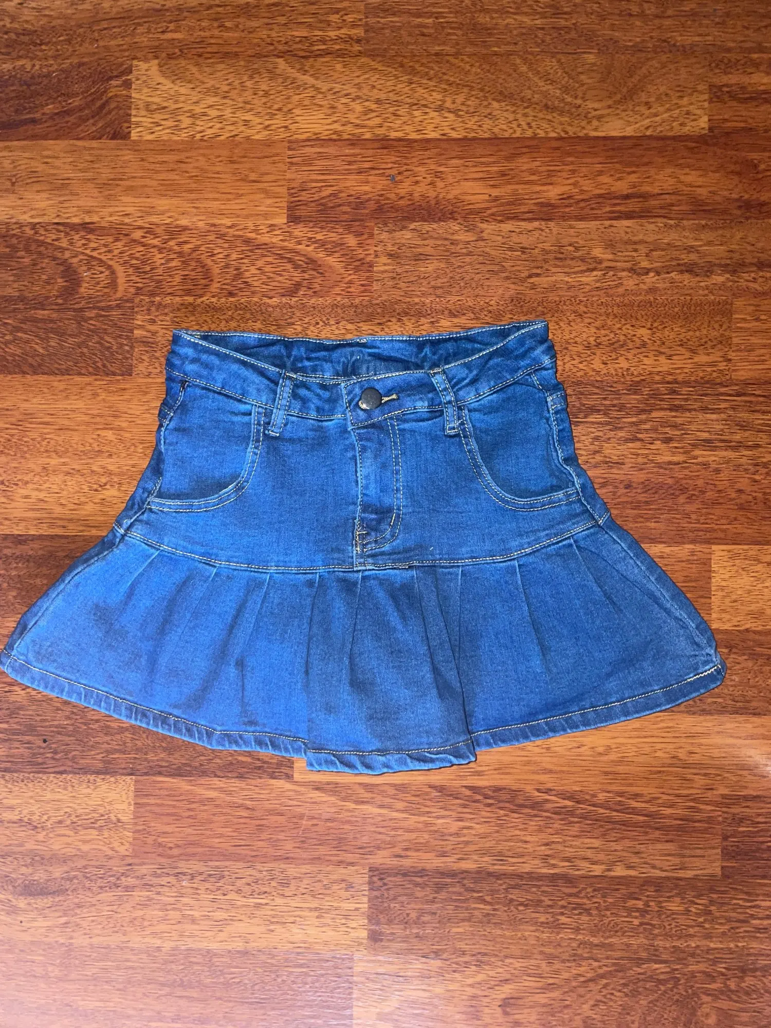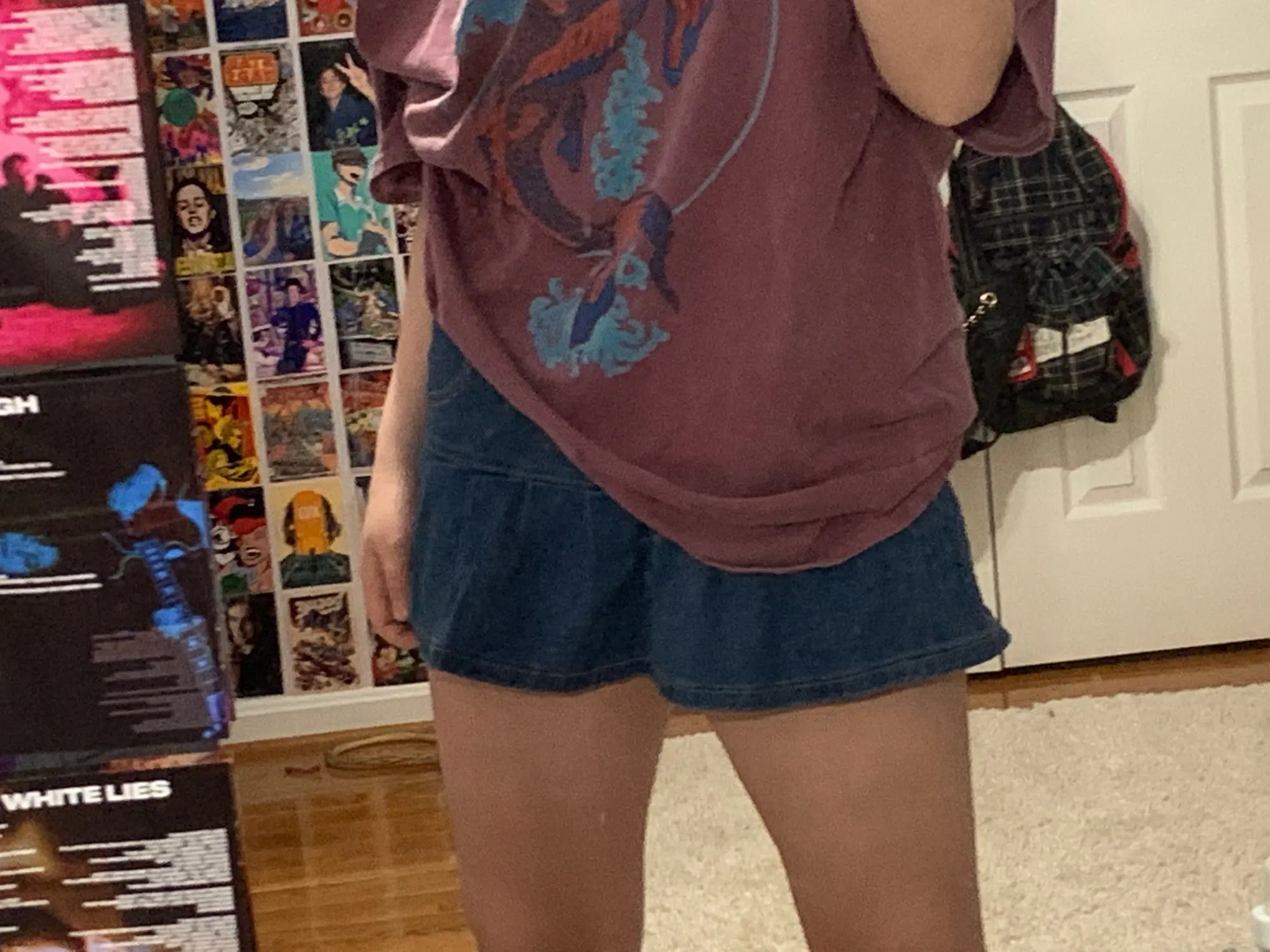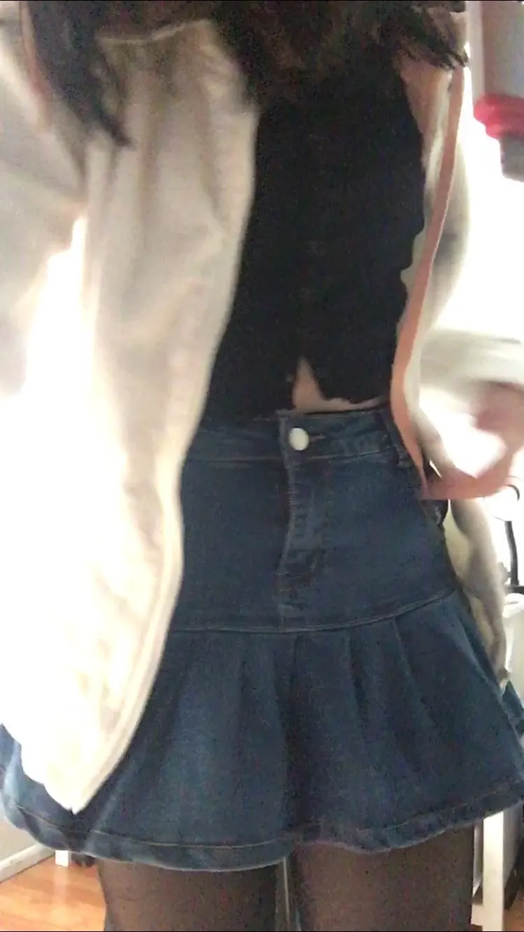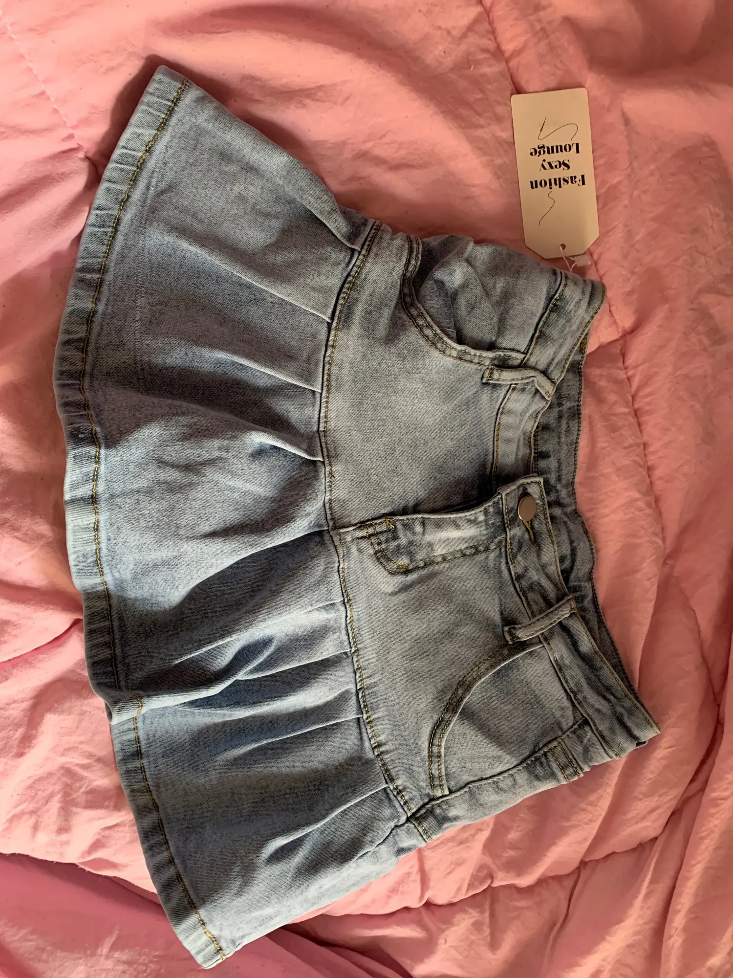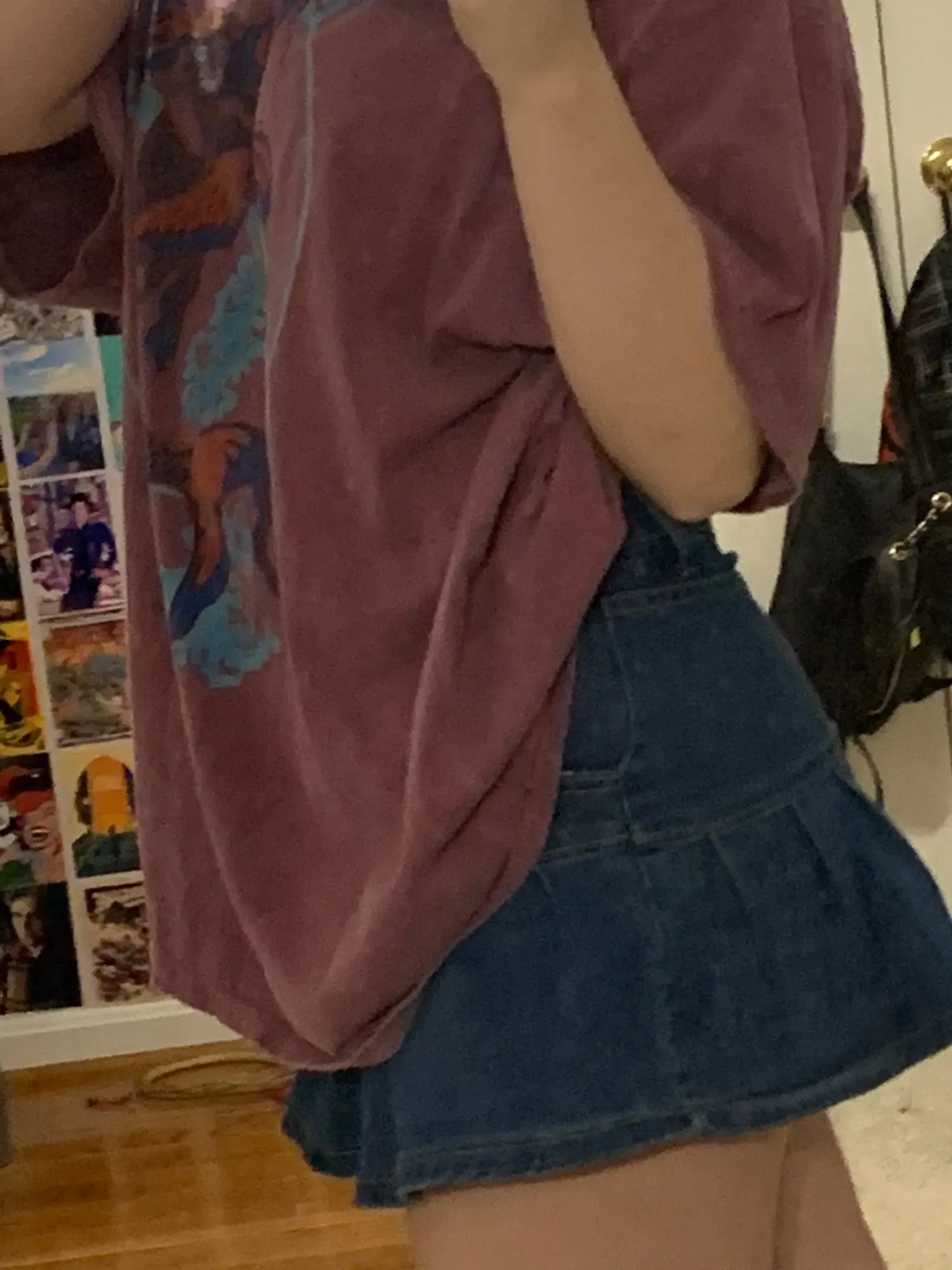 It’s so cute it kinda fit weird in the back, like there was this gap but it could just be my body shape. it’s denim and the fabric is kinda stretchy. It’s also super short to be honest but it comes with shorts. It’s a little high waisted, it ended at the middle of my belly button. The button is super flimsy and the slit for the button is small but you could just cut it open more. For reference I’m 5’6 120 pounds 27” waist and 35” hips