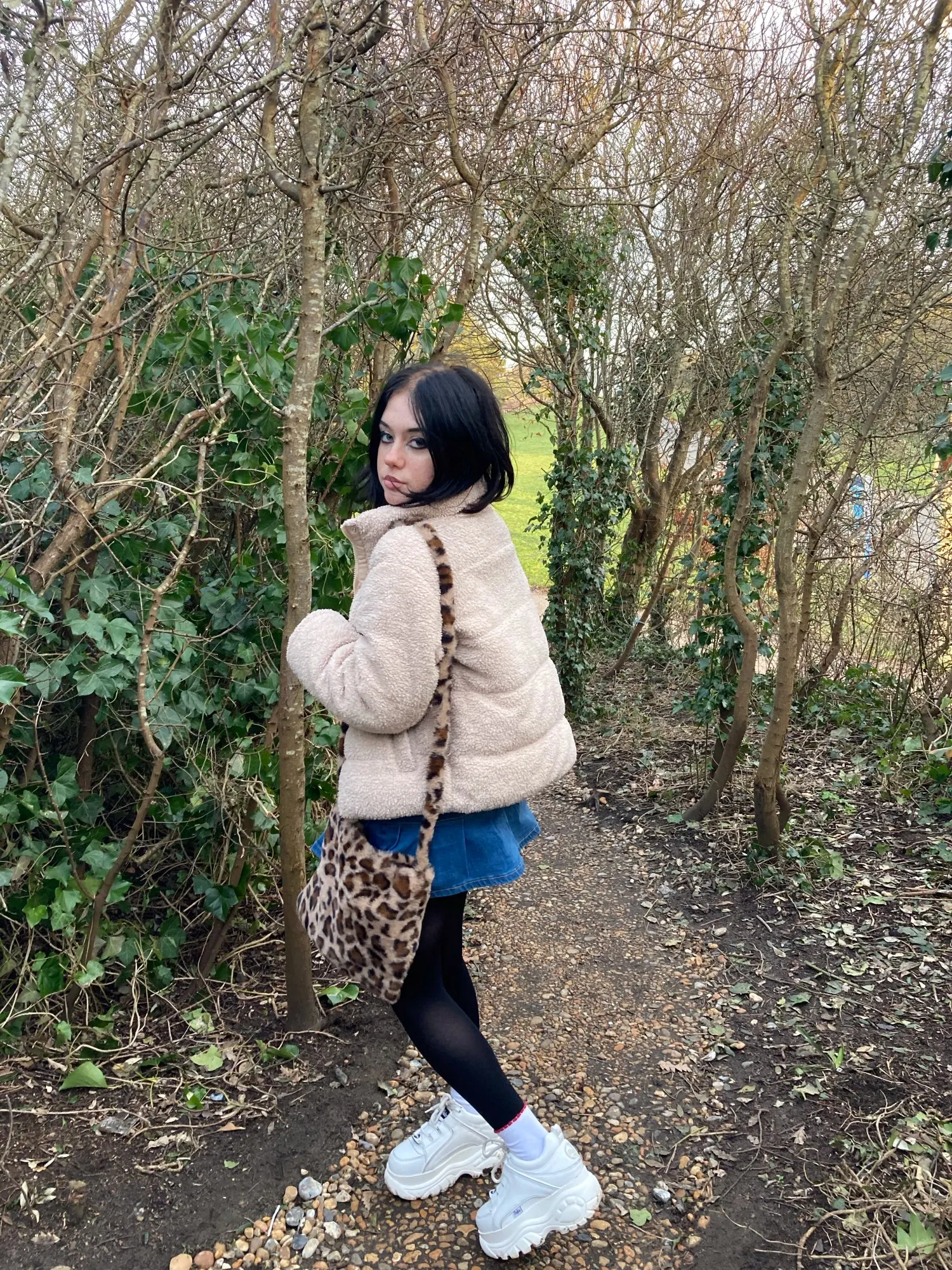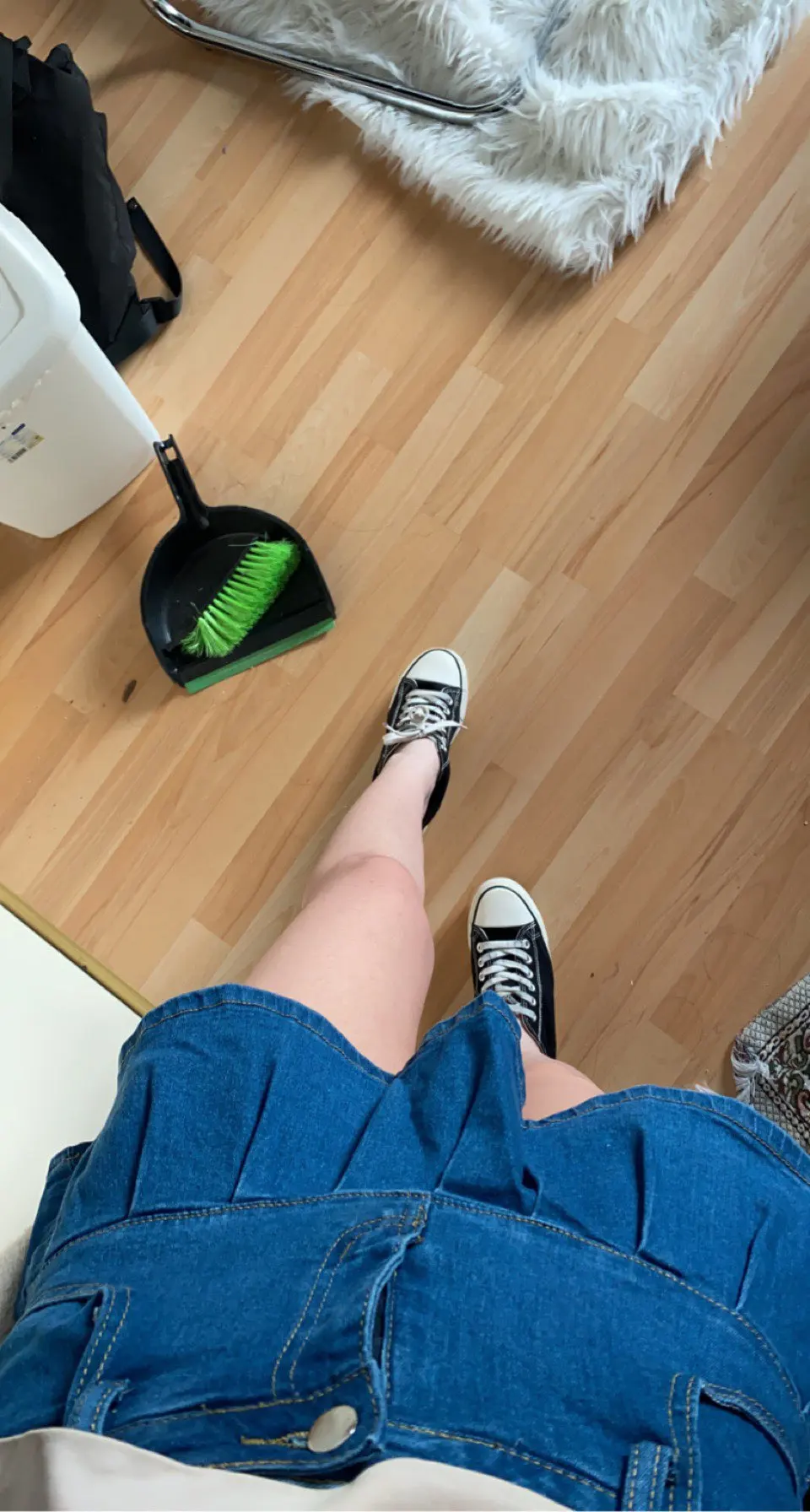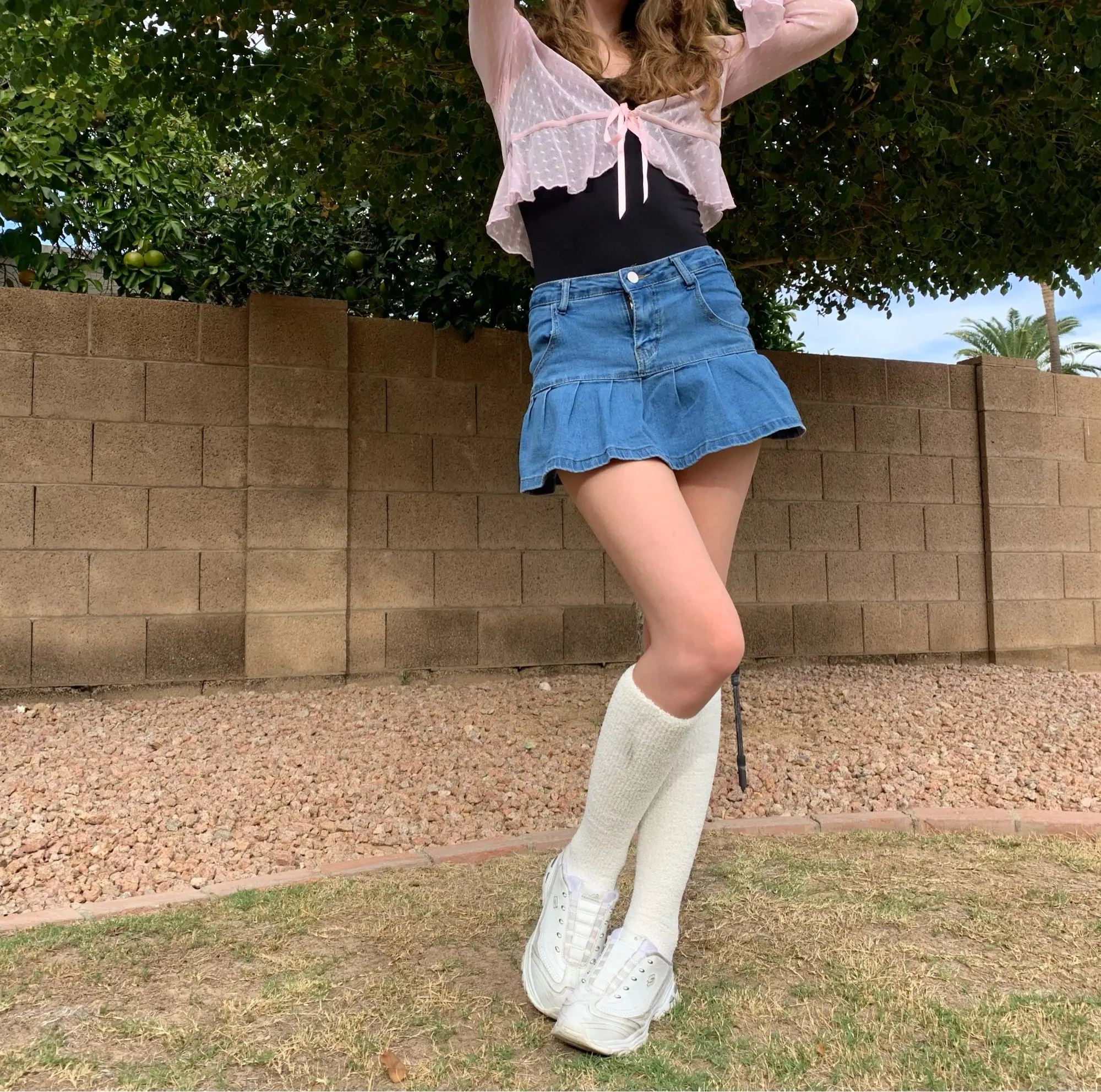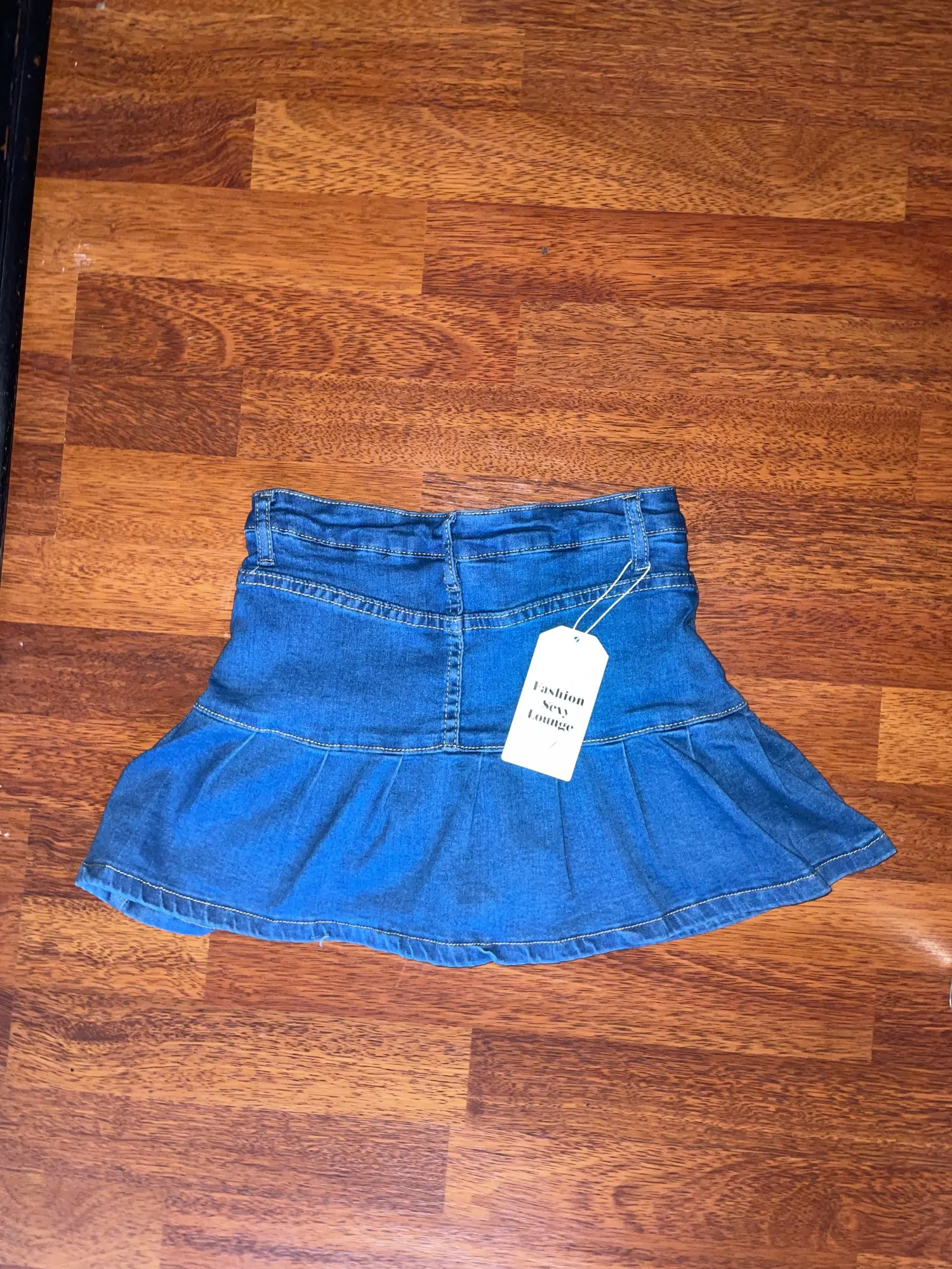 It’s so cute it kinda fit weird in the back, like there was this gap but it could just be my body shape. it’s denim and the fabric is kinda stretchy. It’s also super short to be honest but it comes with shorts. It’s a little high waisted, it ended at the middle of my belly button. The button is super flimsy and the slit for the button is small but you could just cut it open more. For reference I’m 5’6 120 pounds 27” waist and 35” hips