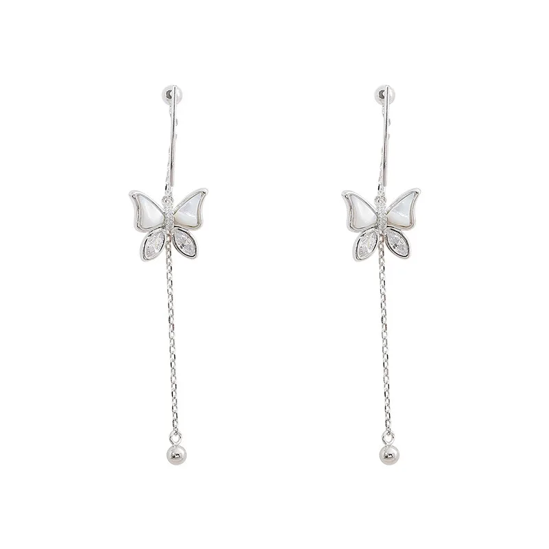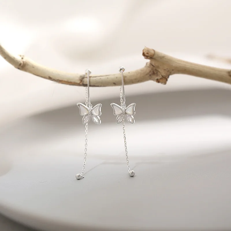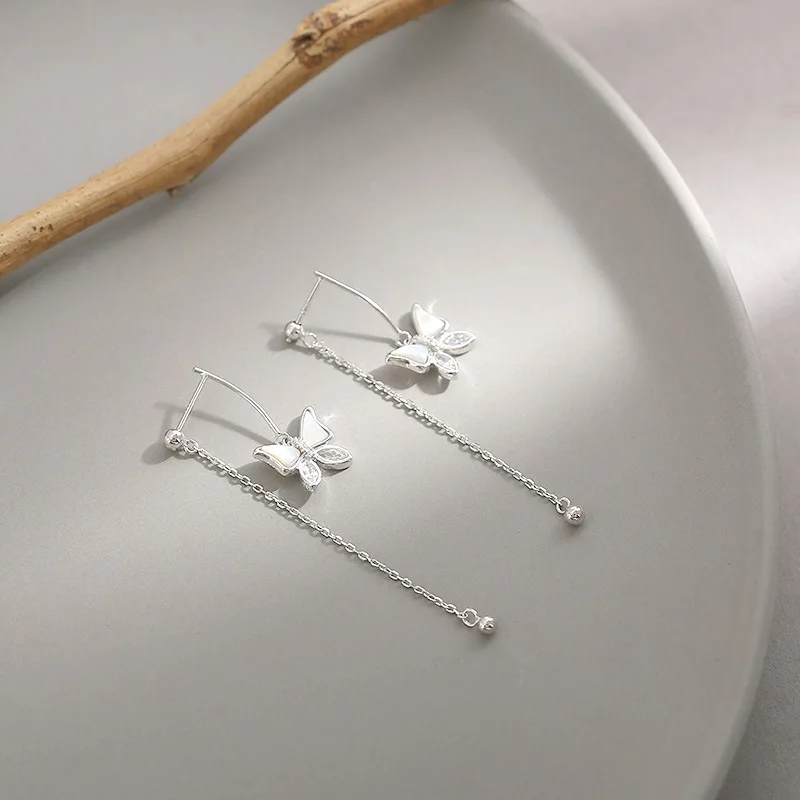 Женские серьги-бабочки из серебра 925 пробы, с цепочкой