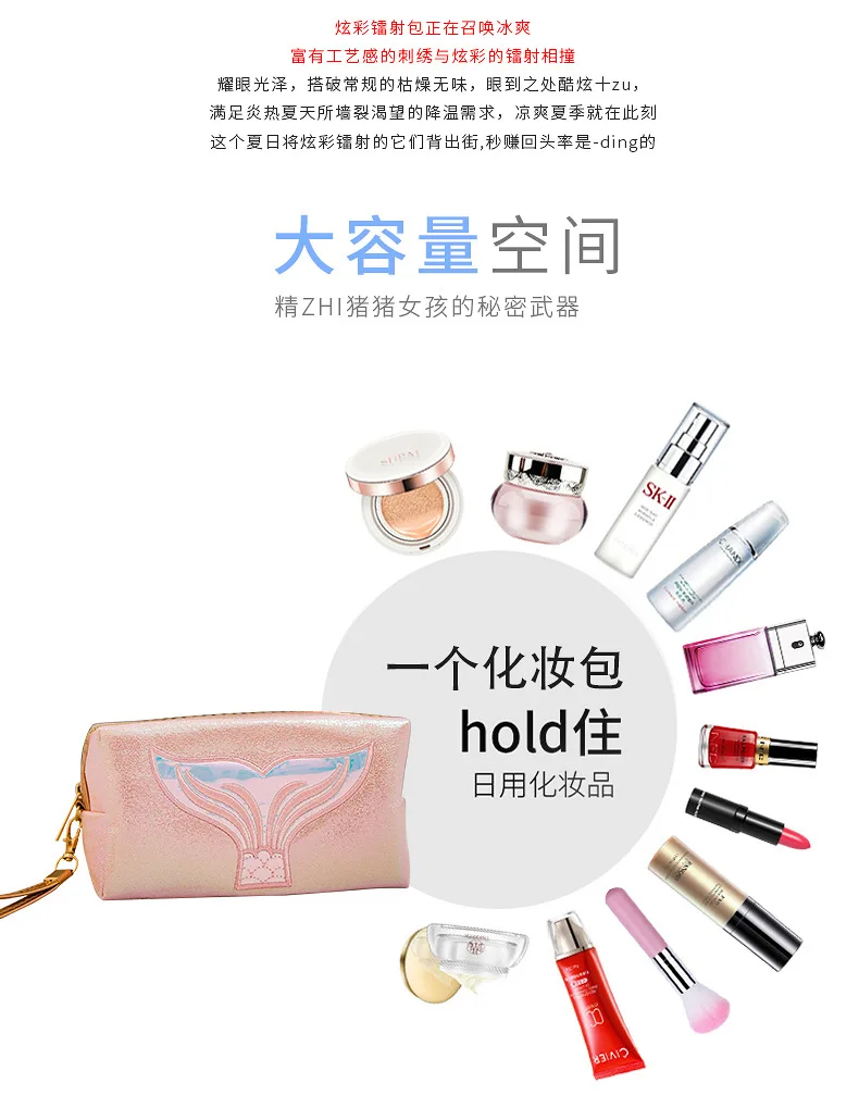 Женская косметичка, 1 шт., Портативная сумка, косметичка, красочная косметичка с хвостом русалки, вместительная сумка для хранения