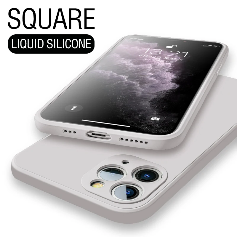 Квадратный жидкий силиконовый чехол для iPhone 13 12 11 Pro Max 13 ...