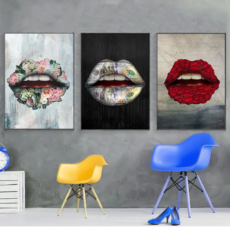 Граффити Сексуальная губная помада, картина маслом на холсте настен...