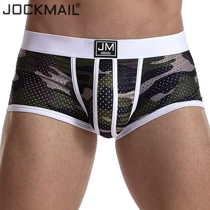 Трусы-боксеры JOCKMAIL мужские, камуфляжное нижнее белье из сетчатой ткани, дышащие шорты, пикантное нижнее белье для геев