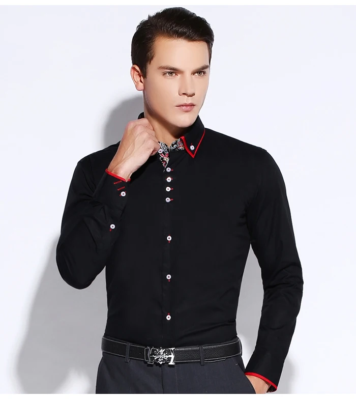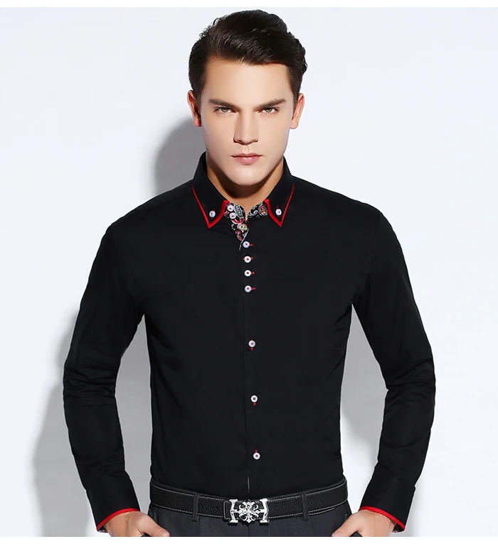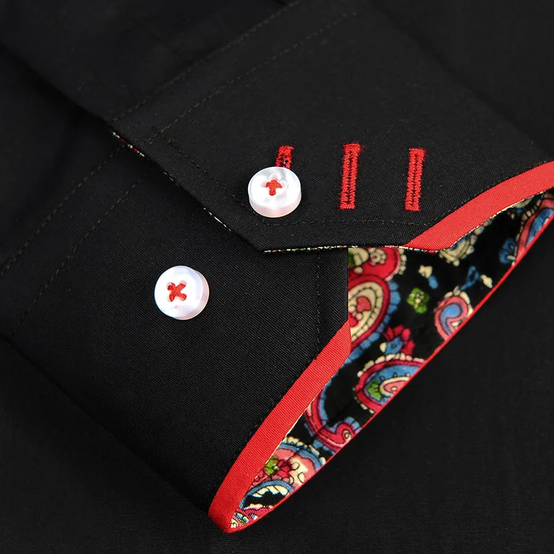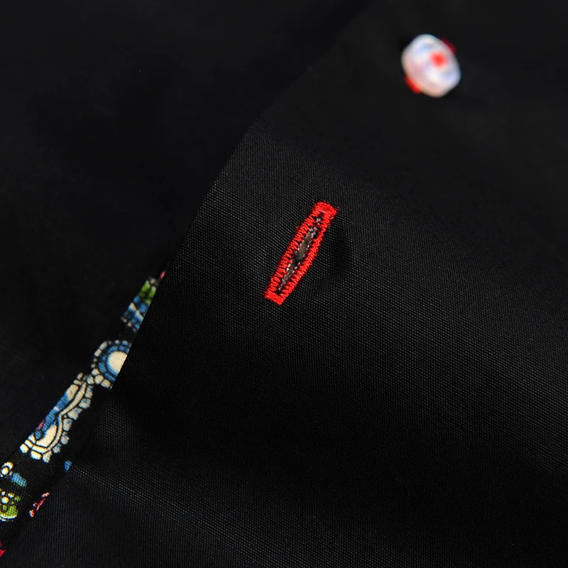 Мужская хлопковая рубашка с отложным воротником, двухслойная рубашка с принтом в китайском стиле, Без карманного дизайна, длинными рукавами и воротником на пуговицах