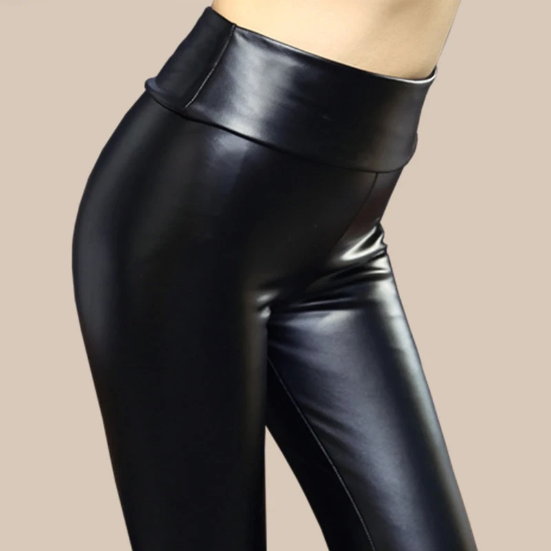 Леггинсы женские кожаные эластичные, с высокой талией, на флисе