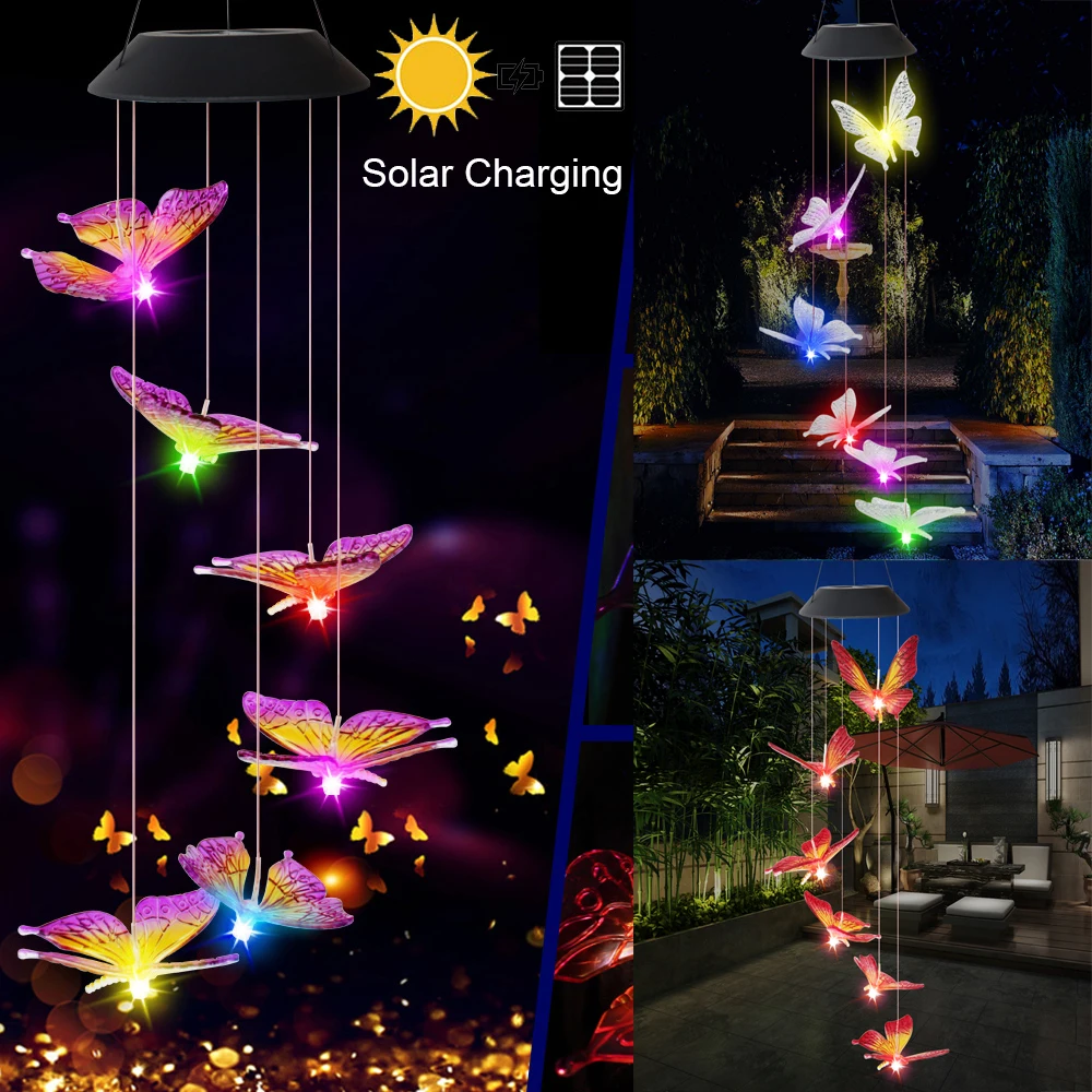 Уличный светодиодный ветрогенератор, водонепроницаемый светильник с питанием от солнечной батареи, IP65, Бабочка, колибри, газон, лампы для украшения сада и двора