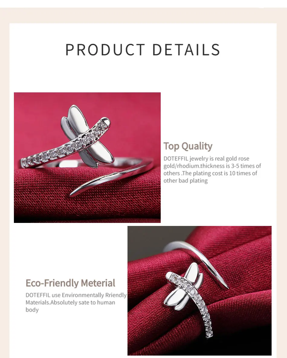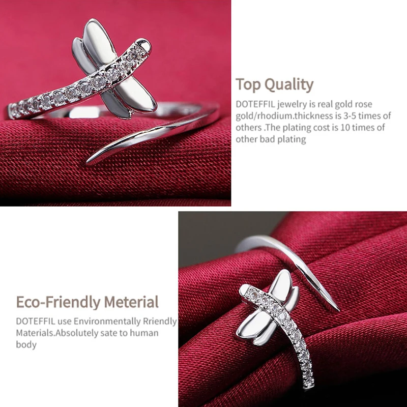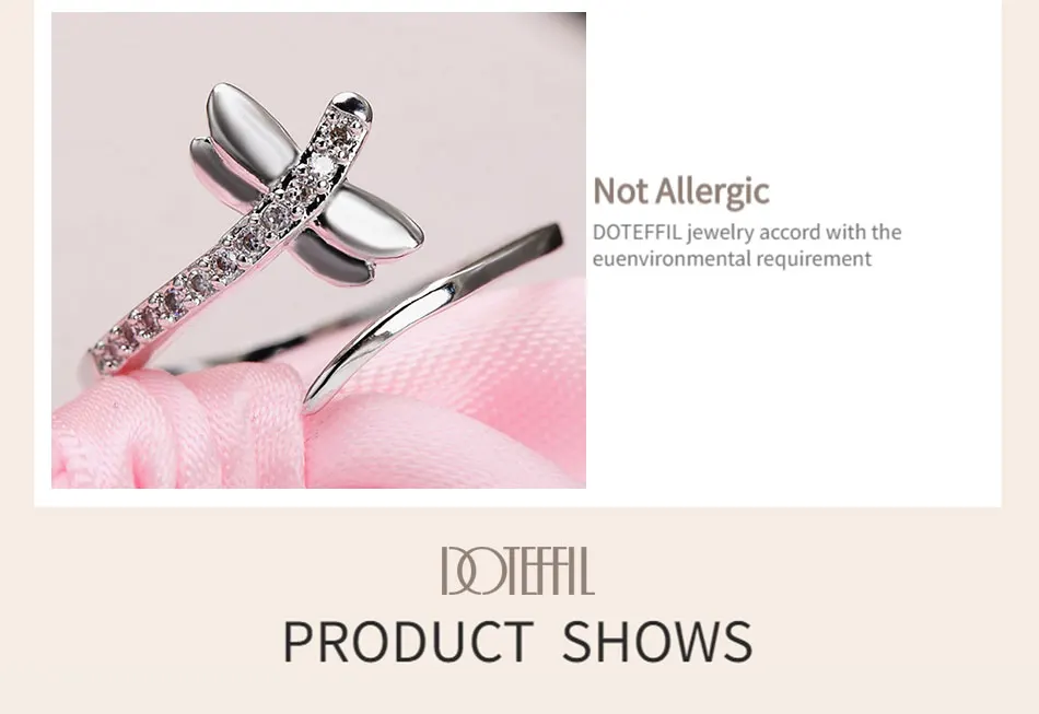 Женское Открытое кольцо DOTEFFIL, из стерлингового серебра 925 пробы, с цирконием ААА, модные свадебные вечерние ювелирные украшения для помолвки