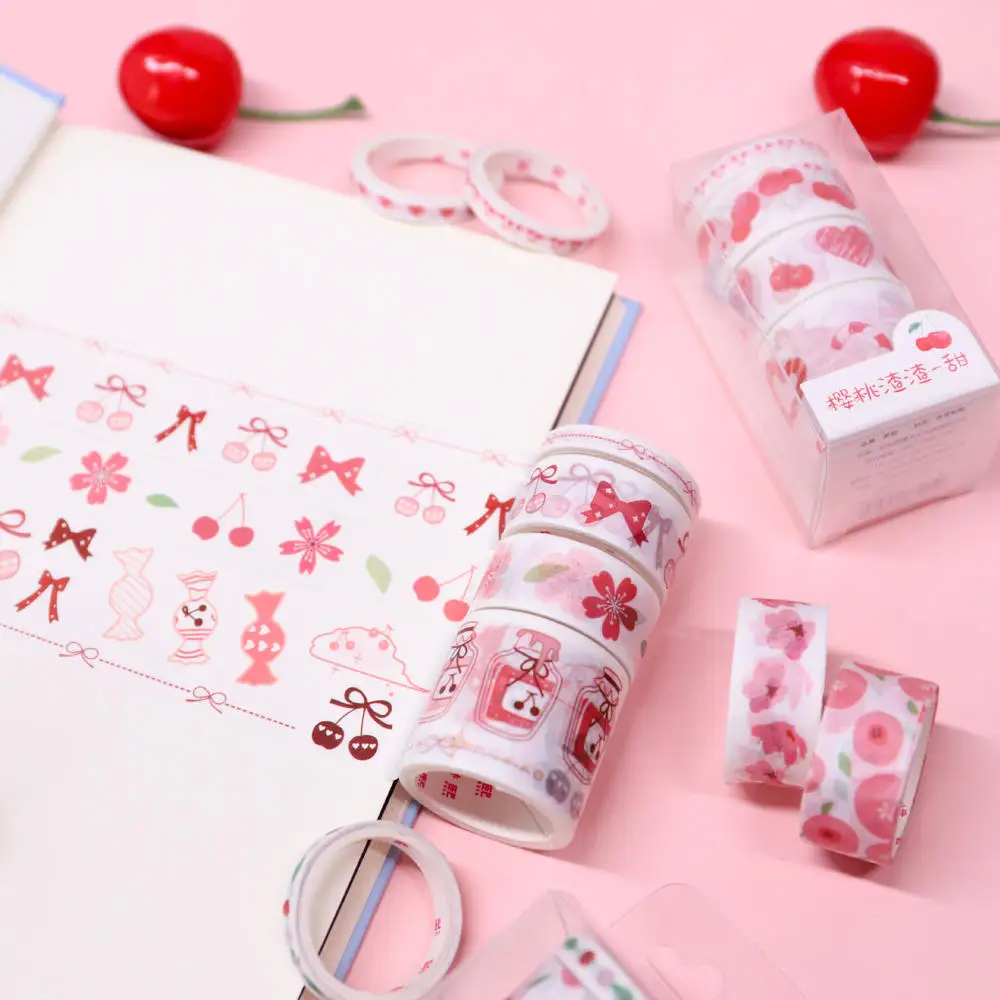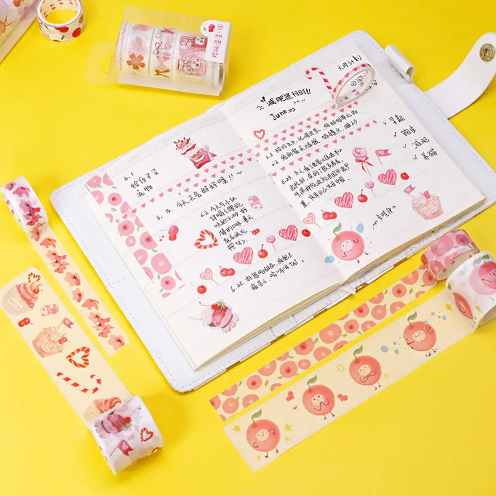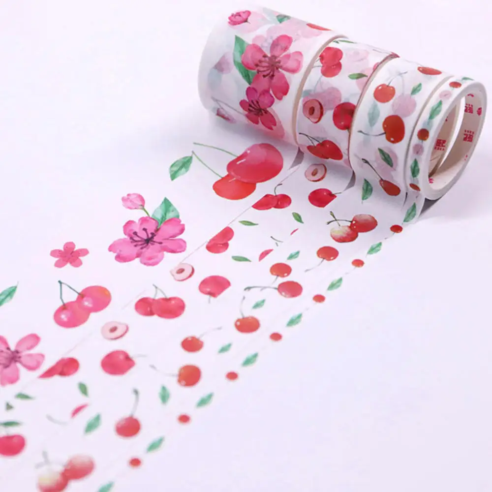 Набор лент для самостоятельного изготовления малярных этикеток, 2 м, с изображением фруктов, красной вишни, персика, вишни, скрапбукинг бумажная наклейка