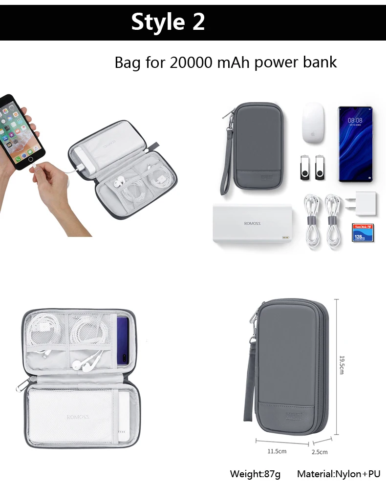 Сумка внешнего аккумулятора BUBM для 20000 30000 40000 мАч, органайзер для хранения кабелей, наушников, телефонных чехлов