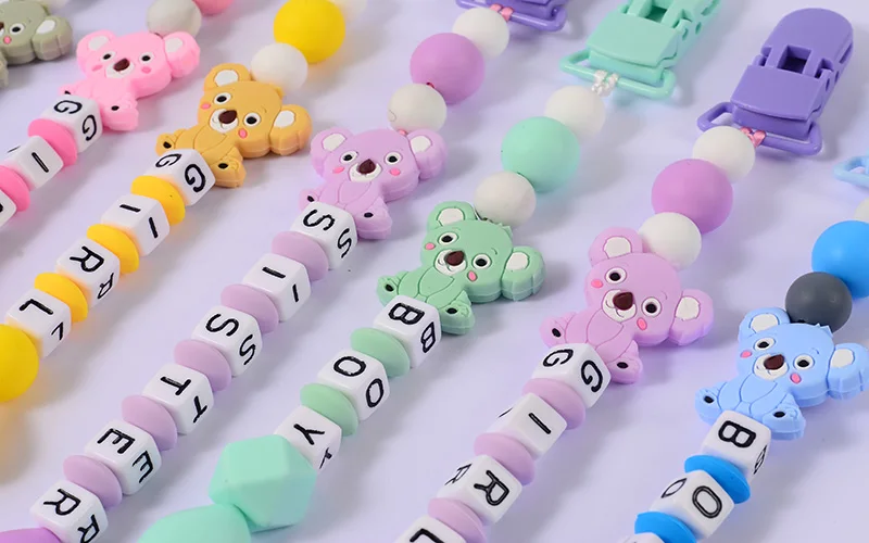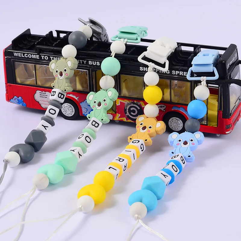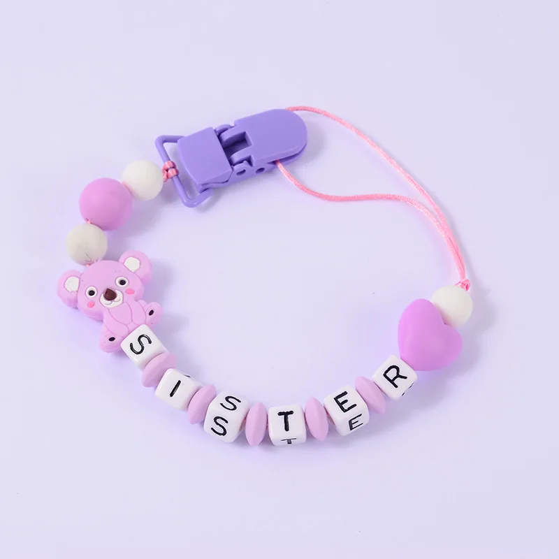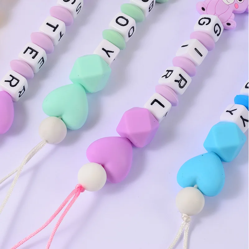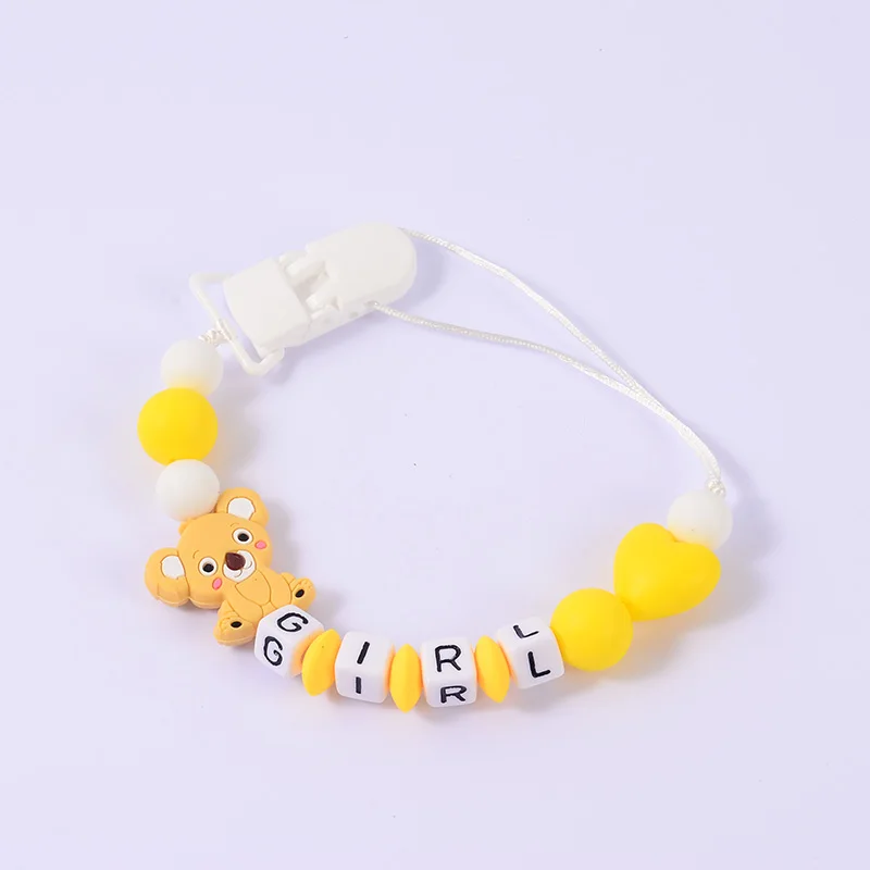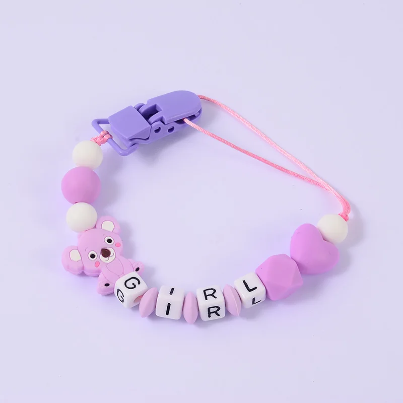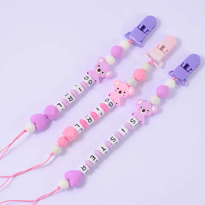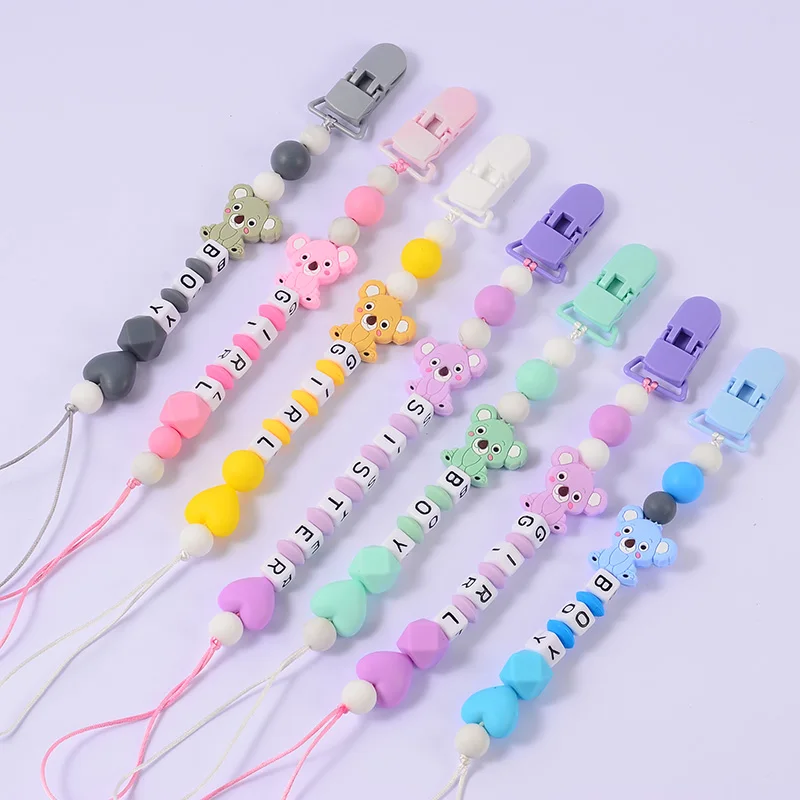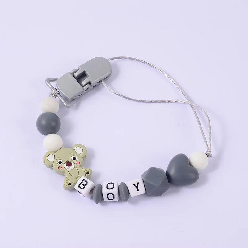 Персонализированные именные зажимы для соски на заказ, держатель, цепочка, силиконовая цепочка для соски с животными, сердце, Детская силиконовая цепочка для соски