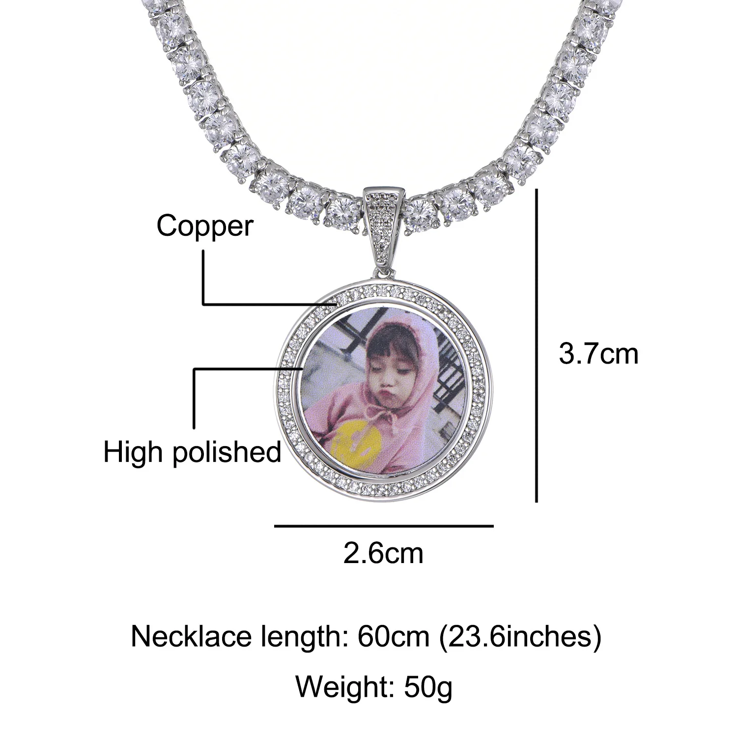 JesElleCo хип-хоп европейский и американский стиль на заказ фото круглая форма кулон ожерелье для модных ювелирных изделий