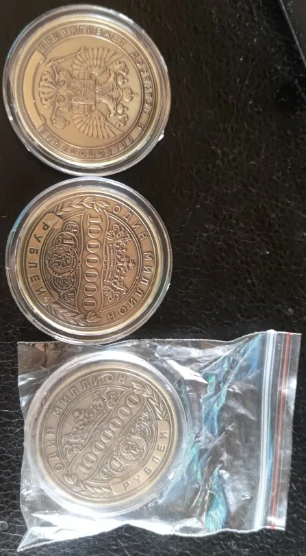 Это копия памятной монеты 1 миллион рублей в России с двойной рельефной поверхностью.