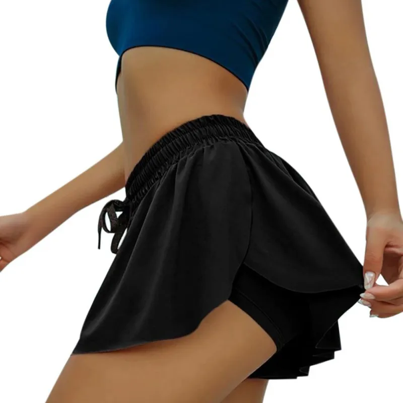 Женские шорты для бега 2 в 1, с оборками и ягодицами, быстросохнуща...