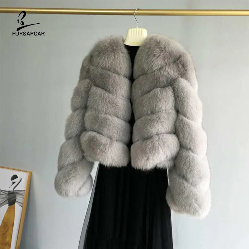 Модные шубы FURSARCAR из натурального Лисьего меха с длинным рукавом, роскошная женская зимняя куртка для женщин из натурального меха, верхняя одежда для улицы