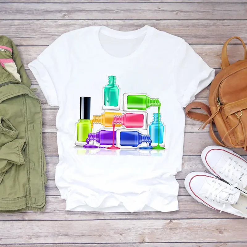 Женская футболка лак для ногтей с персонажами из мультфильмов футболка с рисунком в виде художественного дизайна 90s Harajuku футболка с рисунком футболки для женщин Топ женский