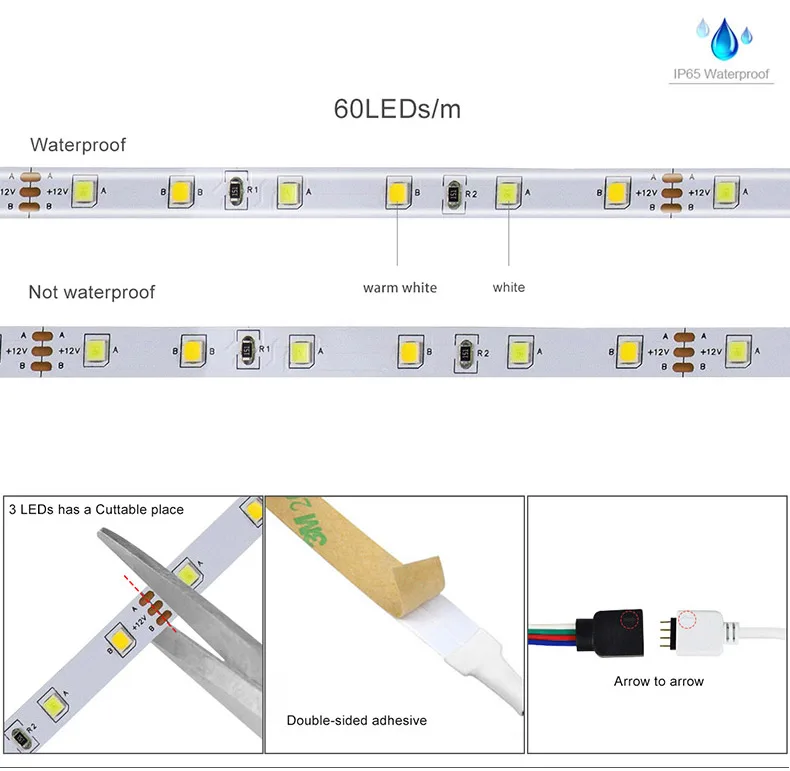 Светодиодная смарт-лента Tuya CCT, лампа с регулируемой яркостью для голосового управления через приложение, совместимый с Alexa Echo Google Home, 12 В постоянного тока, Wi-Fi, 5 м