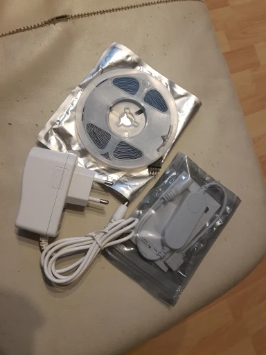 Светодиодная лента для случайного освещения. Светодиодная лента очень красивая, позволяет регулировать интенсивность света и оттенок, от теплого белого до холодного белого. Максимальная интенсивность света, не делает много света, вы не можете осветить комнату с этой светодиодной полосой, хотя от рассеянного света расслабляющего.