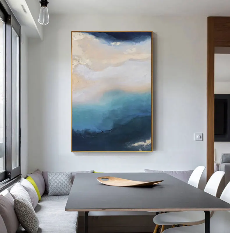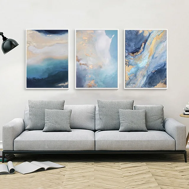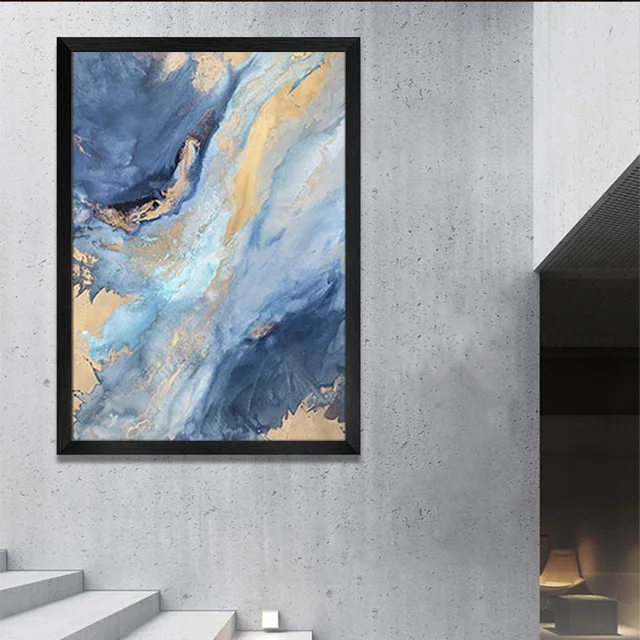 Настенная картина, искусственная мраморная Золотая фольга, синий цвет, Картина на холсте для гостиной, фотография, домашний декор