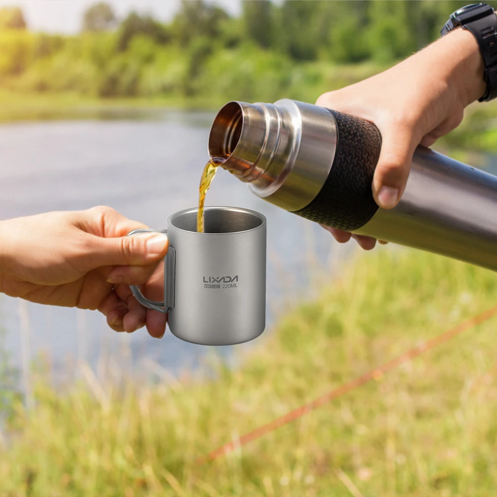 Lixada 450 мл титановая двойная настенная чашка для воды, кофе, чая, Кружка со складной ручкой, складная ложка-вилка, ложка, кофейная кружка для воды