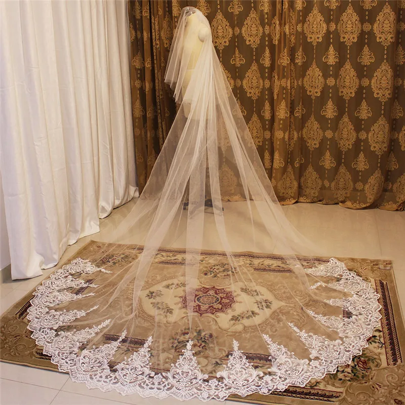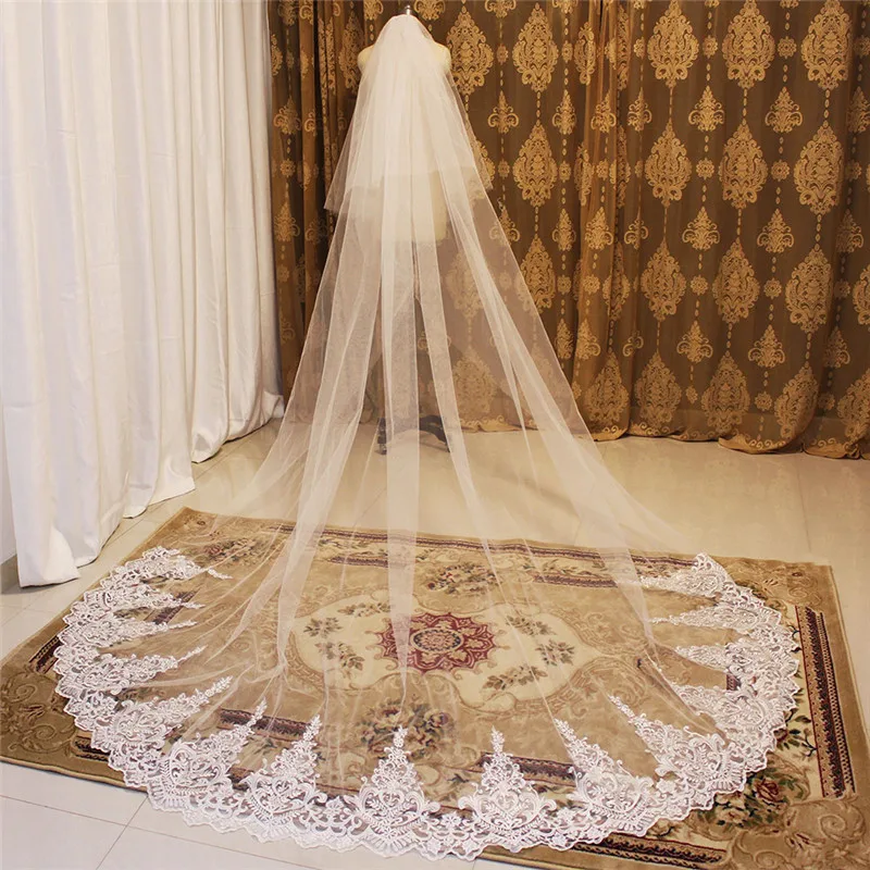 Длинные Кружевные Свадебные вуали 3 м длинная белая цвета слоновой ...