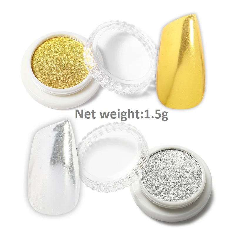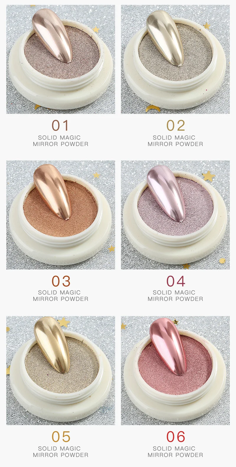 Зеркальная пудра, 6 цветов, золото, серебро, твердый металлический ...