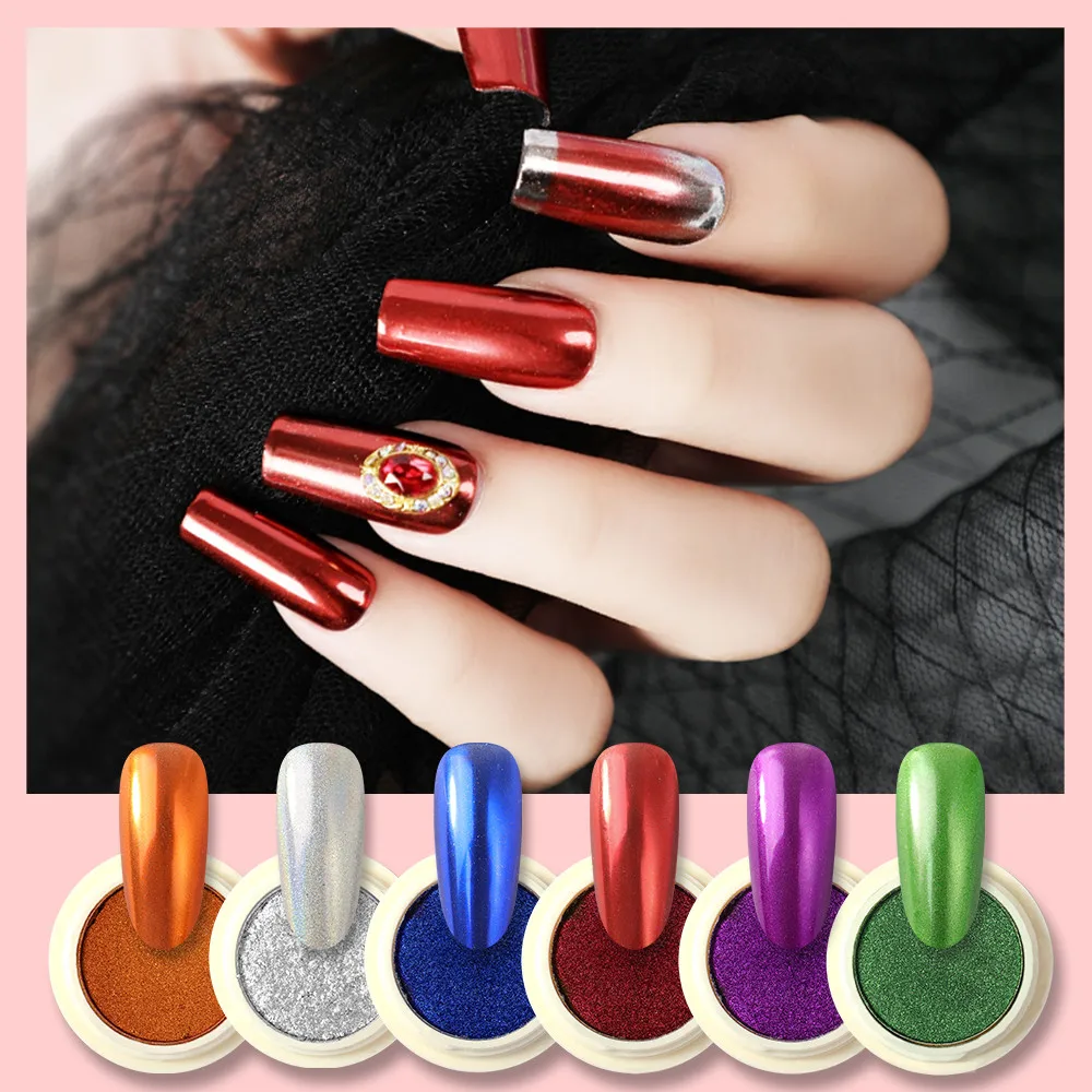 Декоративный лазер для ногтей, зеркальный блестящий порошок, металл...