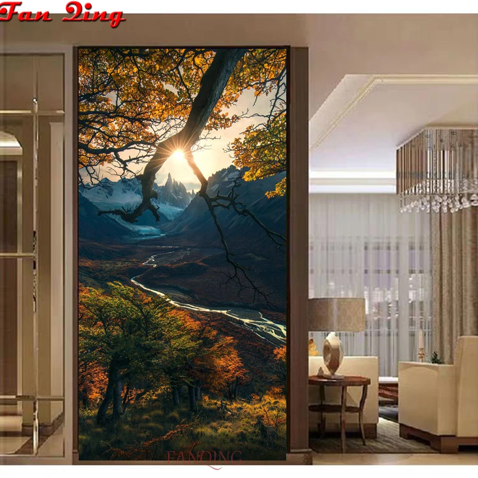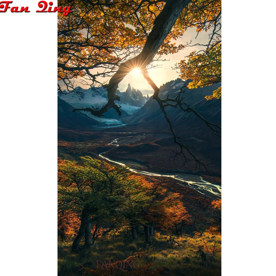 Diy 5D Алмазная мозаика, вышивка крестом, горный поток, восход, природные пейзажи, полностью квадратная круглая Алмазная вышивка