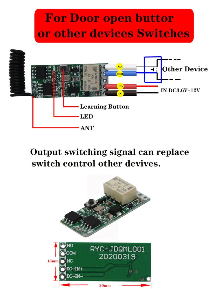 Мини-реле, беспроводной Радиочастотный переключатель для светодиодсветодиодный ламп, 3,5 в, 4,2 в, 5 В, 6 в, 9 В, 7,4 В, 12 В постоянного тока, 433 МГц