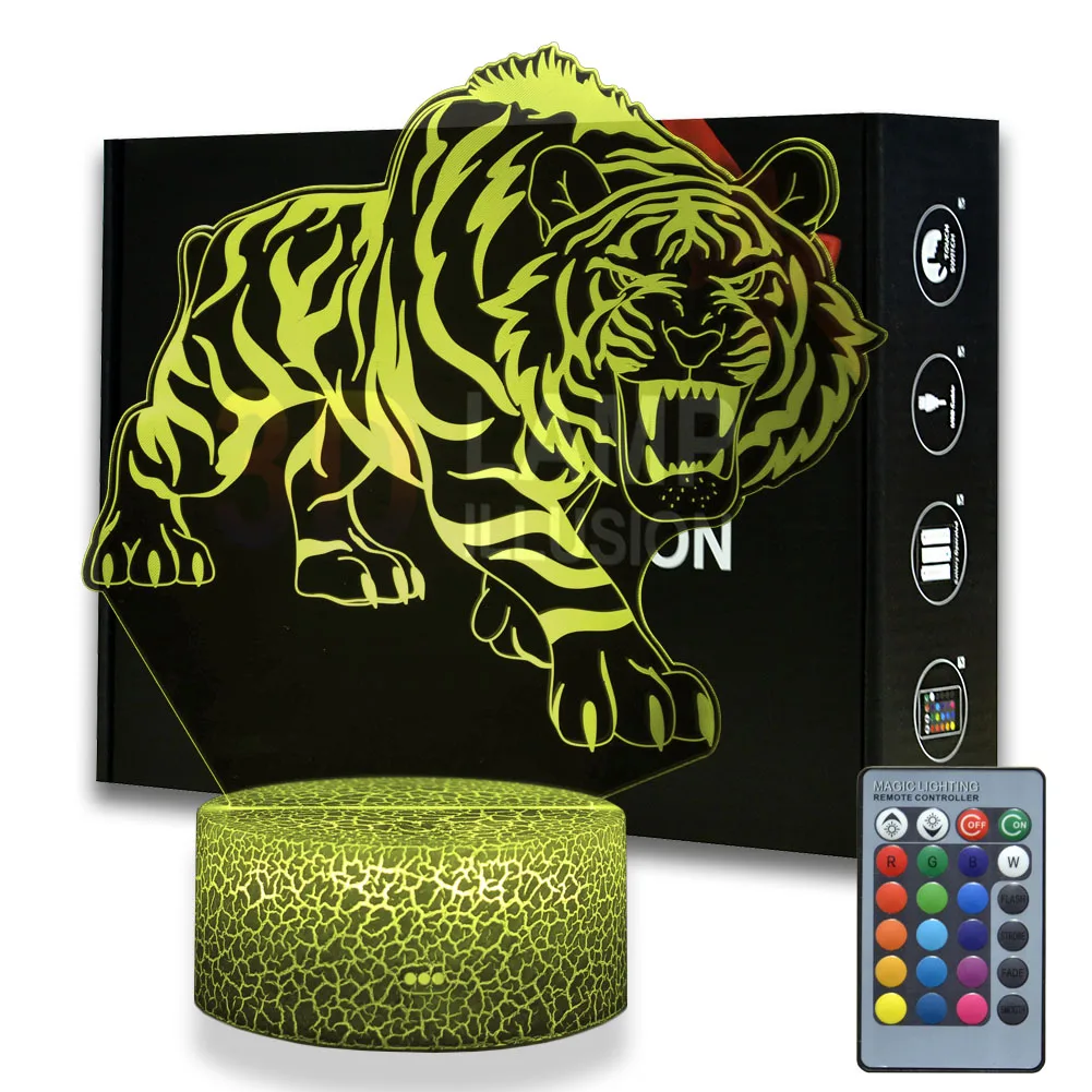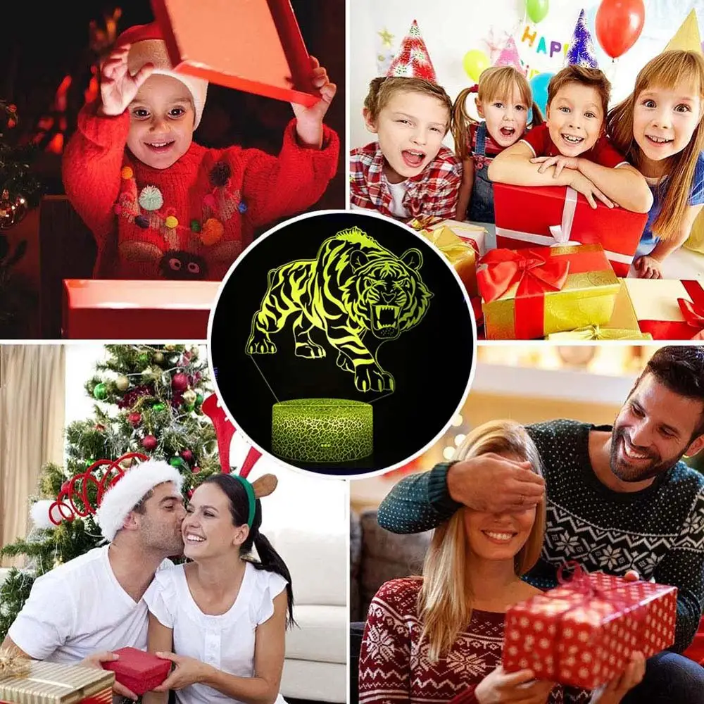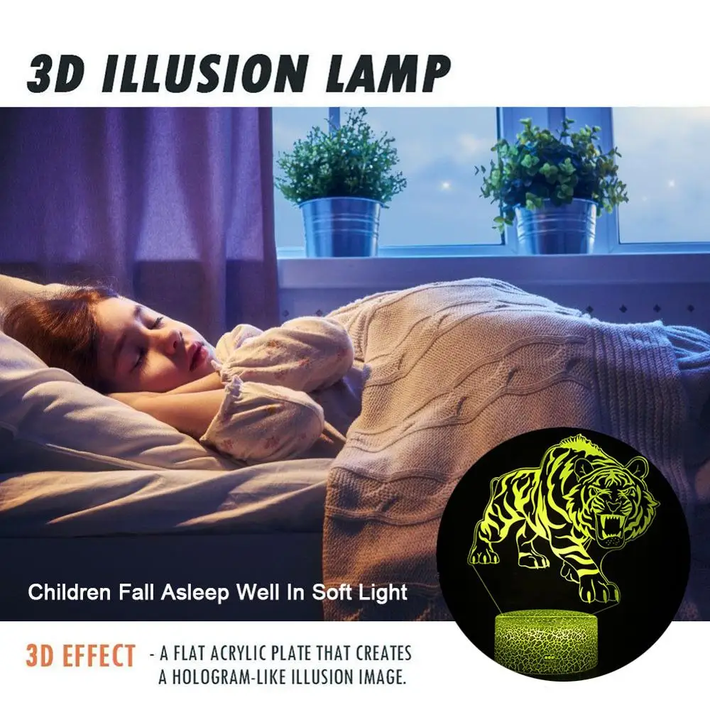 Тигра Ночная светильник ABS база с акриловый светильник борад 3D Тигр Иллюзия детский Спальня мультфильм настольная лампа на день рождения рождественские подарки