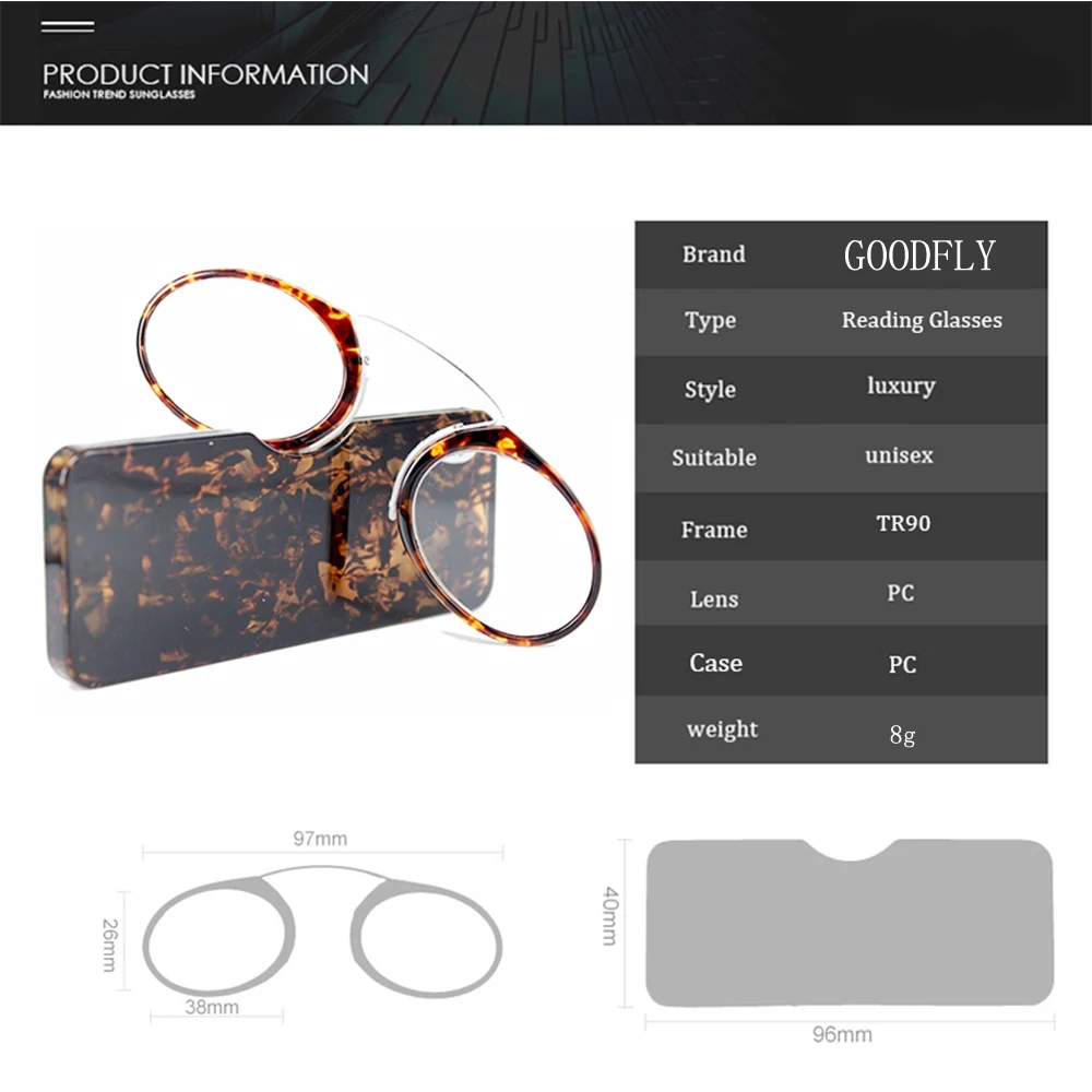 Мини-очки для чтения с зажимом для носа, с футляром и чехлом