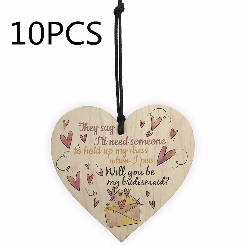 10 шт., деревянные подвески в виде сердца для подружки невесты