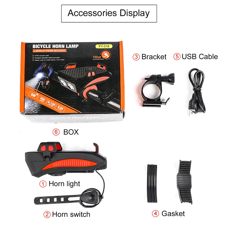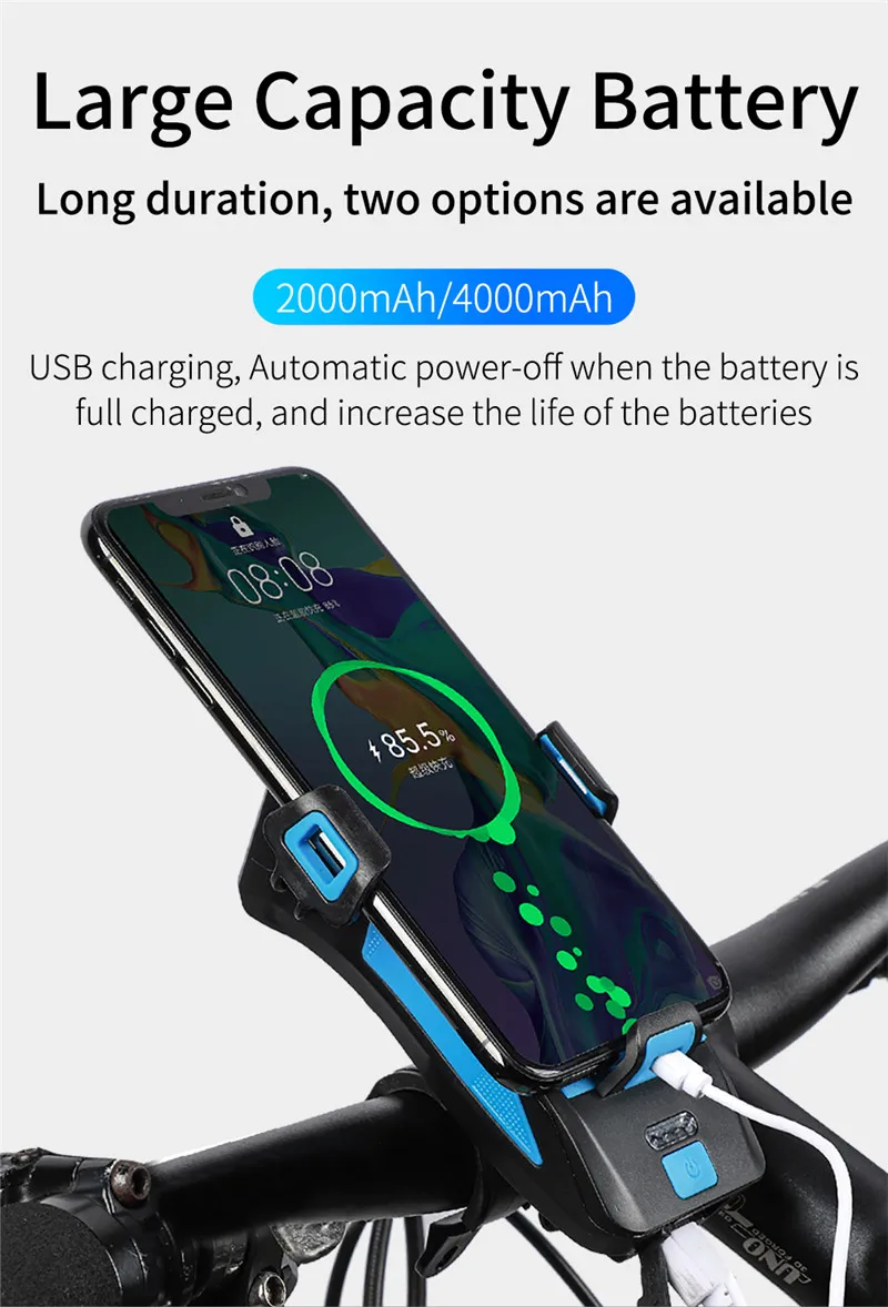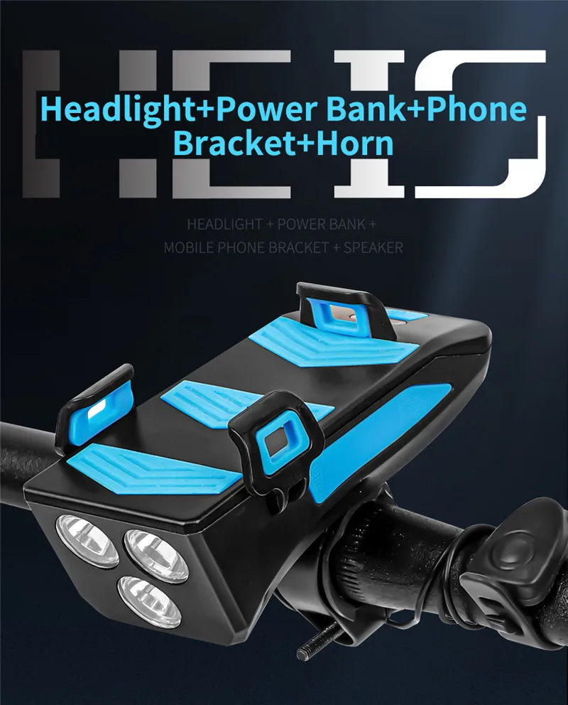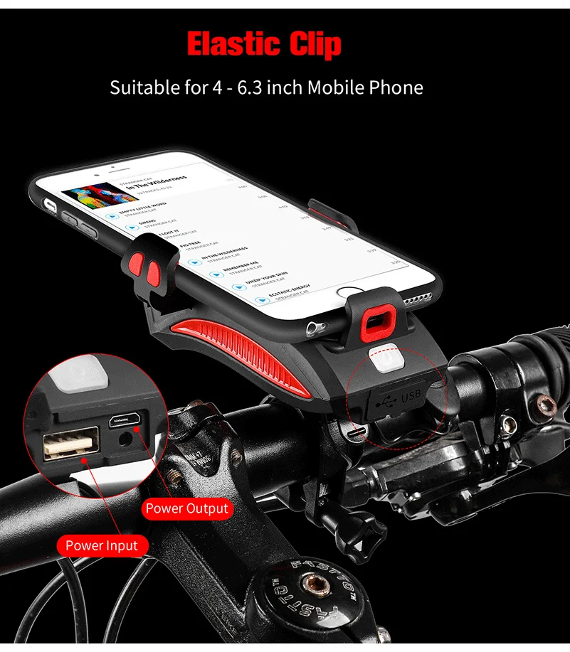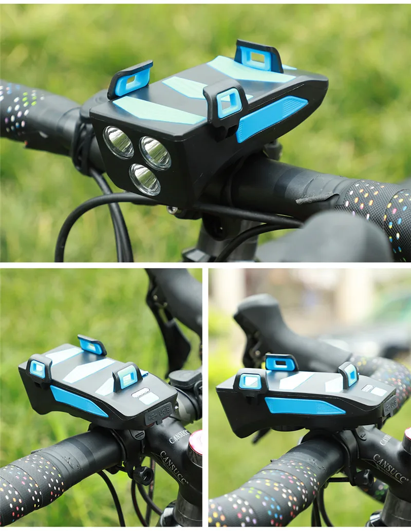4 в 1 велосипедный передний светильник держатель для телефона Подставка на руль с функцией велосипедного звонка
