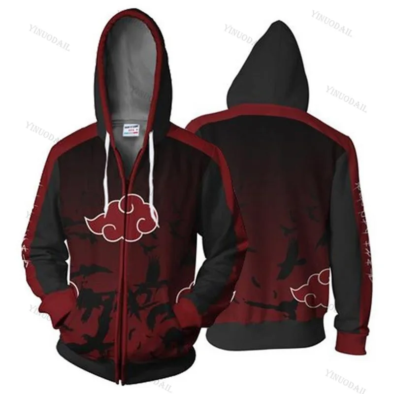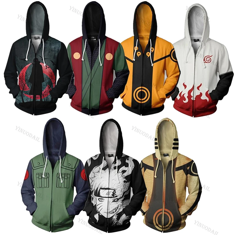 Толстовка с капюшоном для мужчин и женщин, повседневный свитшот на молнии с аниме принтом Наруто, 3D Рисунок, уличная одежда