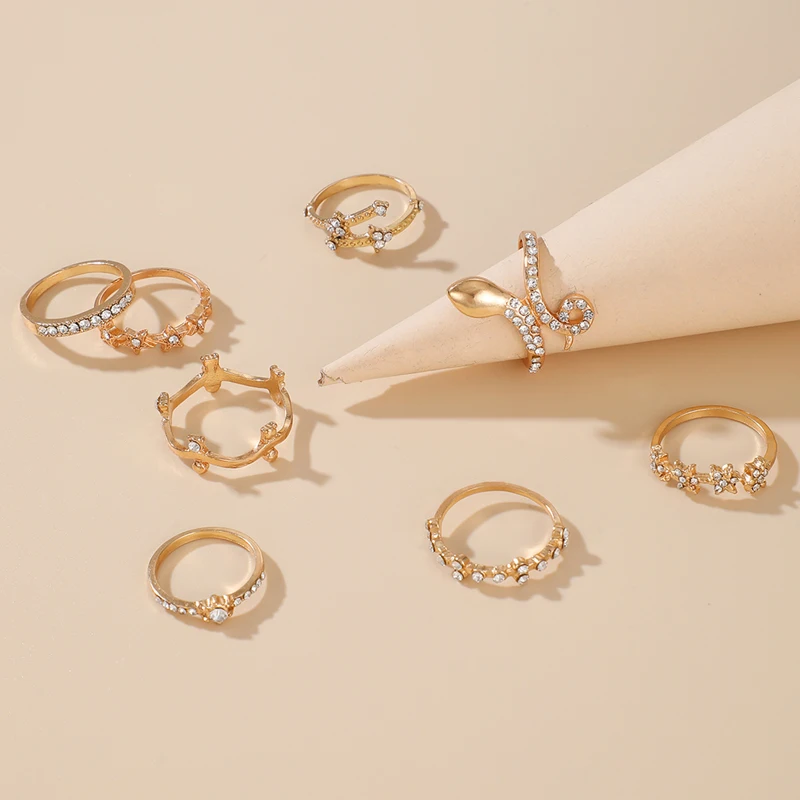 Tocona 8 шт.компл. золотого цвета змея звезда соединение Кольцо для женщин Прозрачный кристаллический камень цветы геометрические ювелирные изделия аксессуары 15592