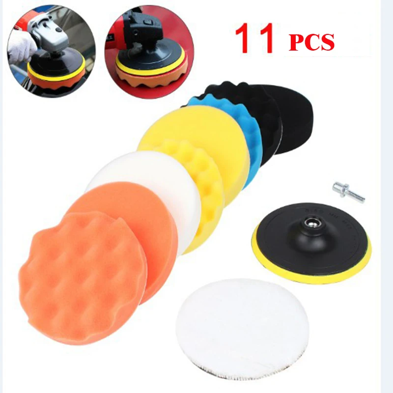 11 шт.лот 3-дюймовая губка для мытья автомобиля, полировка воском, полировочные колодки, комплект, полировщик автомобиля, адаптер для дрели, мойка автомобиля, очистка детейлинга