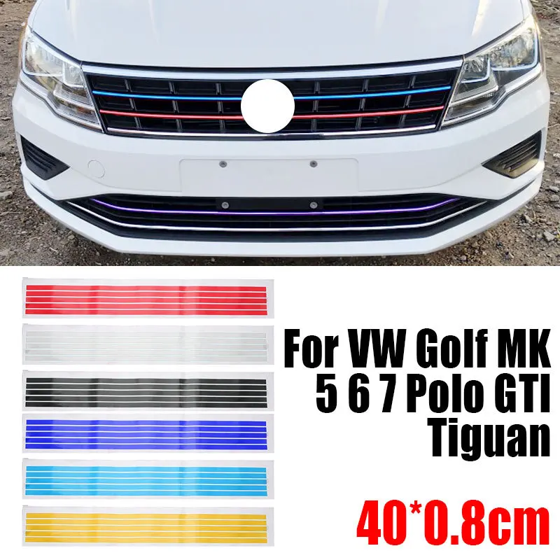 Наклейка на решетку радиатора, 0,8 х40 см, светоотражающая полоска, защита от царапин, для VW Golf, красный, синий, желтый, автомобильные аксессуары, Стайлинг автомобиля