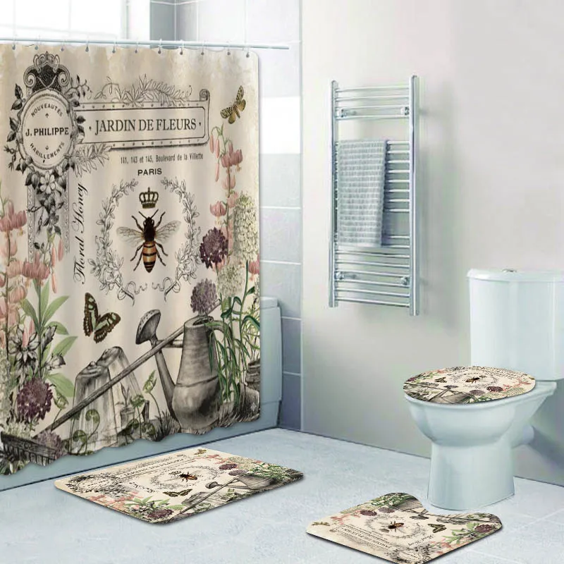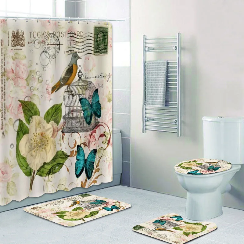 Ретро Винтаж плакат с изображением сада Цветочные занавески для душа набор Лавандовые Цветы бабочки птицы Водонепроницаемая занавеска для ванной занавески водонепроницаемые коврики для ванной