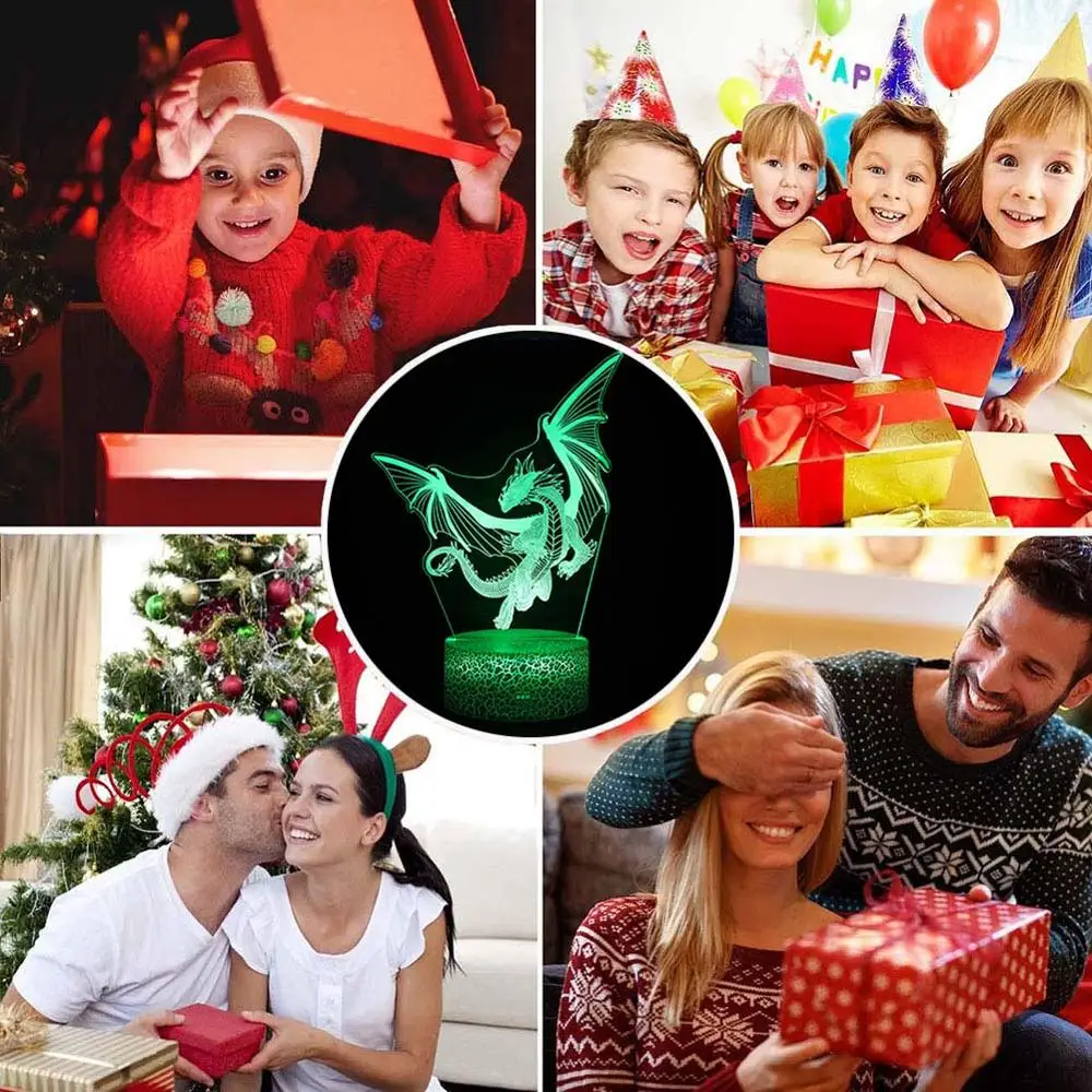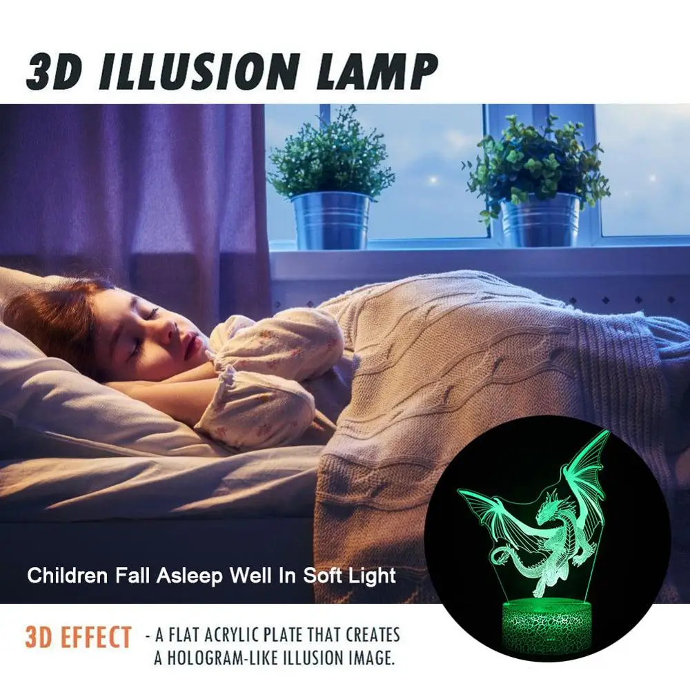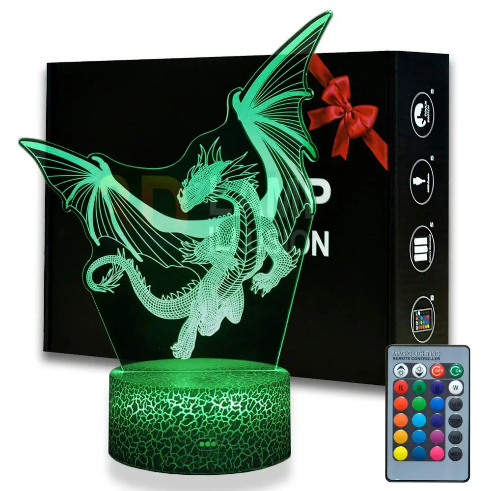 Дракон Ночной светильник ABS база с акриловый светильник борад 3D Иллюзия детский Спальня мультфильм настольная лампа на день рождения рождественские подарки