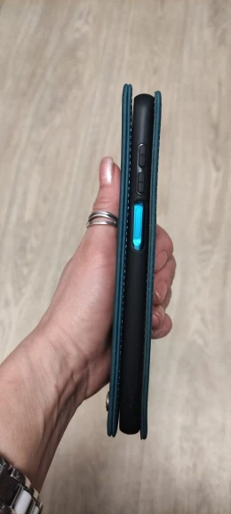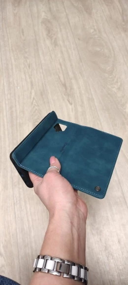 Доставка до Красноярска 2 месяца. Чехол качественный, аккуратный, все отверстия и кнопки соответствуют. Вырез/срез под камеру аккуратно запаян. Цвет почти совпадает с бирюзовым цветом телефона. На ощупь как нубук, приятный, но такой чехол надо брать чистыми руками, быстро запачкается и изотрется на утолщениях. Телефон с ним стал толще почти в два раза. Если Вы хотите толщину поменьше, то выбирайте чехол без кармана. Нравятся канавки на складки, с ними внутренняя часть сгиба выглядит аккуратно. Магнит работает, но слабовато. Цвет на моём фото получился более ярким, чем на самом деле. Использовать буду, но скорее всего, запачкается и изотрется за полгода.