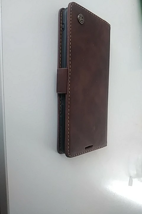 крышка не магнитится, без телефона закрывается, с телефоном торчит, а так подошел по размерам. клея много внизу чехла. шел достаточно долго