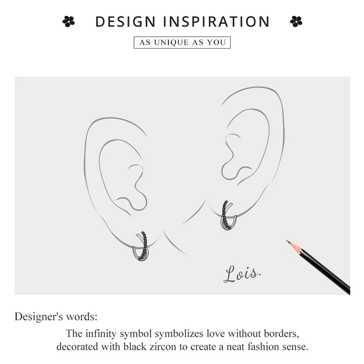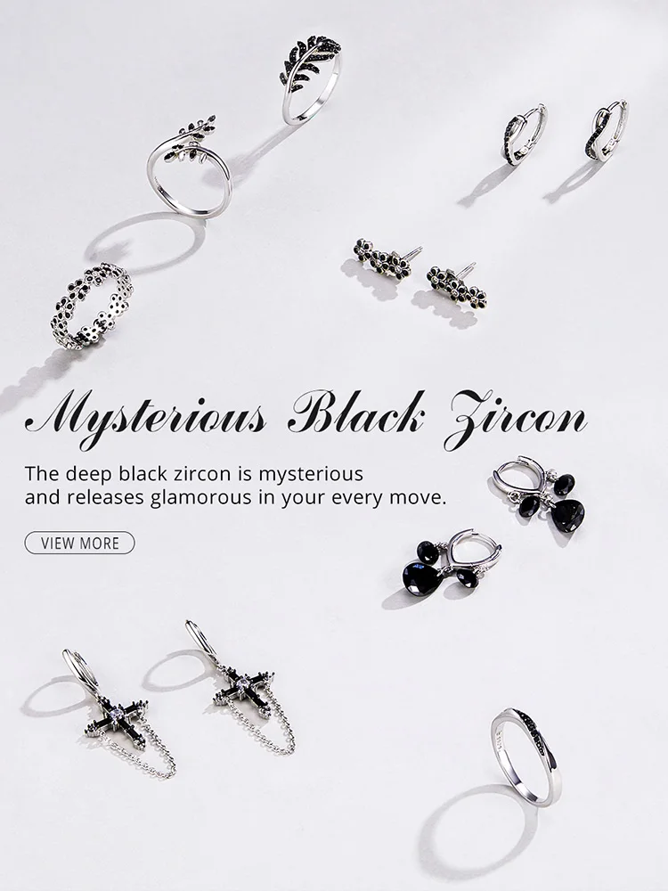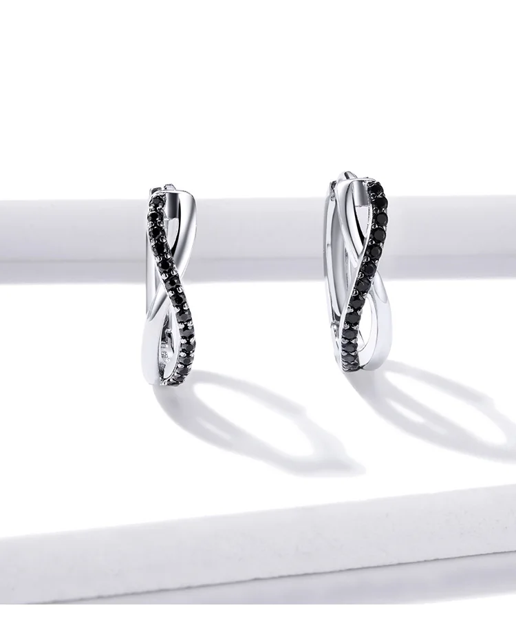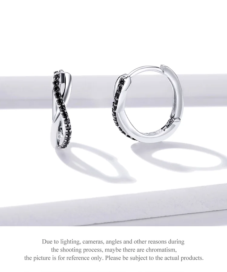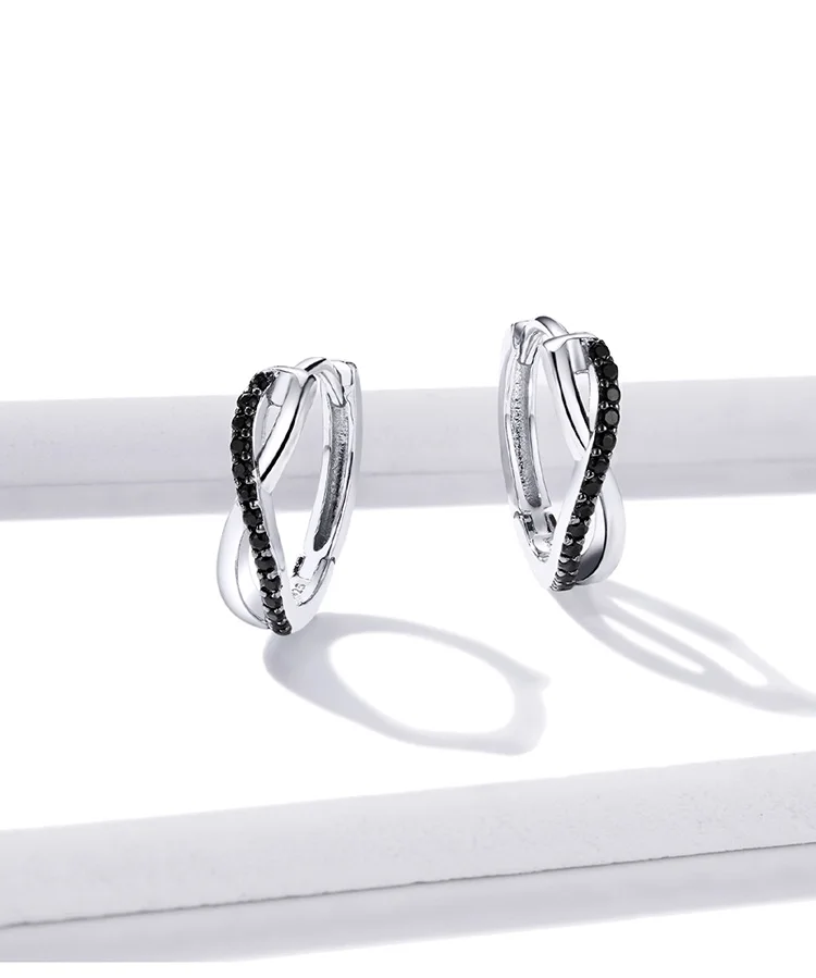 Bamoer Настоящее серебро 925 пробы черный CZ серьги-кольца с крести...