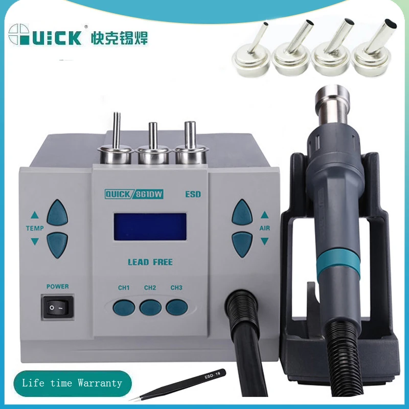 Оригинальная 1000 Вт быстрая 861DW Тепловая пушка без свинца, паяльная станция с микрокомпьютером, температура горячего воздуха, паяльная станция с 7 насадкамиСпециальные Особенности1. Имеет три рабочих Канала CH1, CH2, CH3, и каждый канал может быть установлен на количество ветра и температуры. 2. С защитой паролем и функцией блокировки ключей. 3. Для облегчения работы в режиме реального времени, с магнитным рычагом управления переключателем, помещается в держатель ручки немедленно в спящий режим. 4. С автоматической функцией сна, в спящем состоянии параметры могут быть установлены. 5. Сенсорная замкнутая петля, микрокомпьютер с нулевым пусковым механизмом контроля температуры, питания, нагрева быстро, легко и точно отрегулировать температуру стабильно, без влияния ветра. 6. Вихревые бесщеточные вентиляторы, регулируемый поток воздуха, широкий диапазон, могут быть адаптированы к различным видам использования. 7. Система имеет функцию автоматического охлаждения ветровой мощности, продлевает срок службы нагревательного элемента и защищает ручку горячего воздуха.ДеталиМощность 1000 Вт напряжение переменного тока 220 В/110 в диапазон температур 100 ~ 500 объем воздуха Диапазон 1 ~ 120 максимальный поток воздуха 120 л/мин Размеры 188 (L) раз 245 (D) раз 135 (H) ммВес около 3,65 кгПосылка