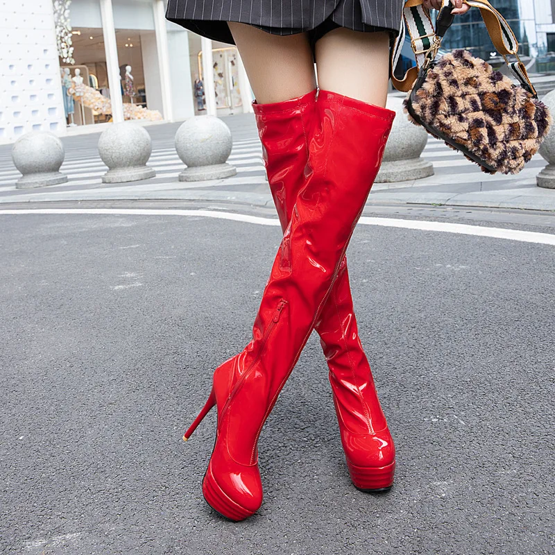 Пикантные красные сапоги до колена на очень высоком каблуке, черные...