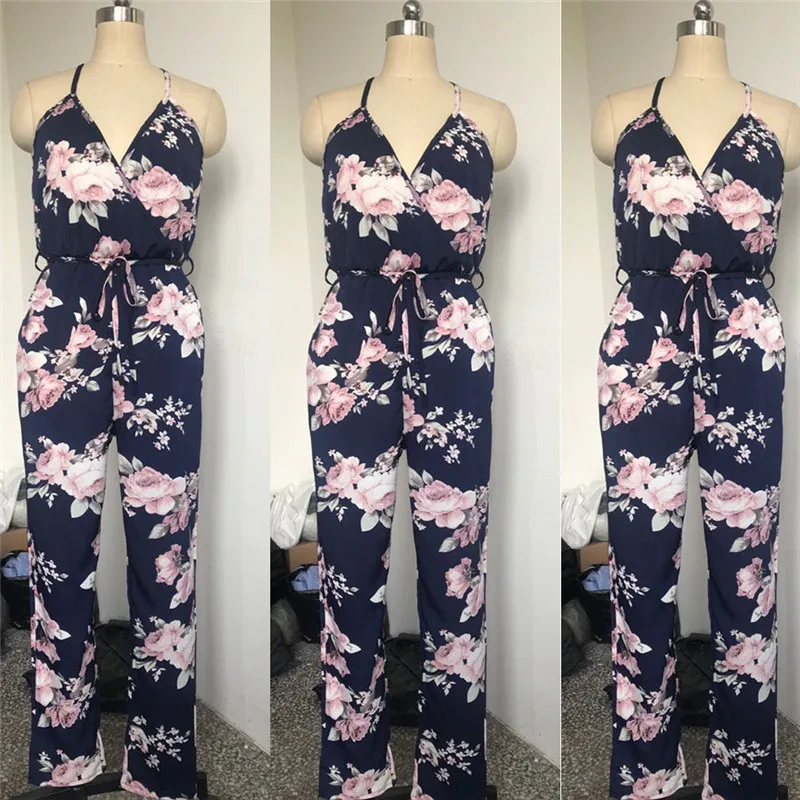 Комбинезон женский летний, без рукавов, с V-образным вырезом и открытой спиной
