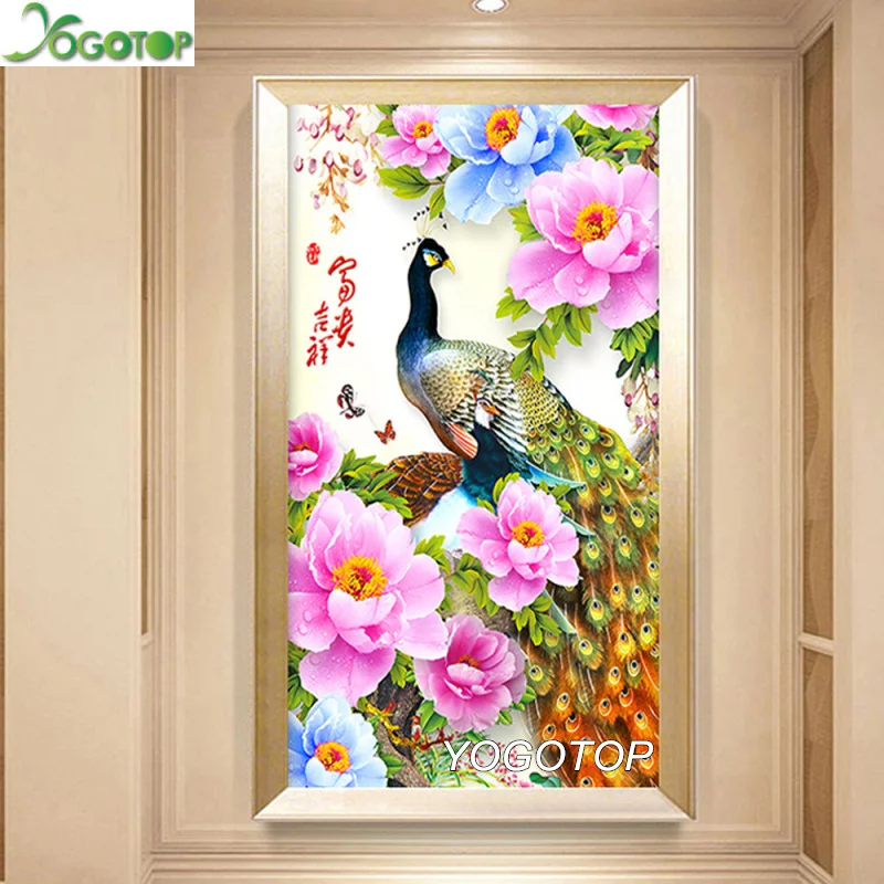 Большая алмазная живопись Peacocks, цветы пиона, алмазная вышивка, животные, китайский стиль, 5d, сделай сам, полностью Алмазная мозаика, Настенный декор YY2977