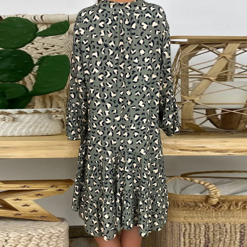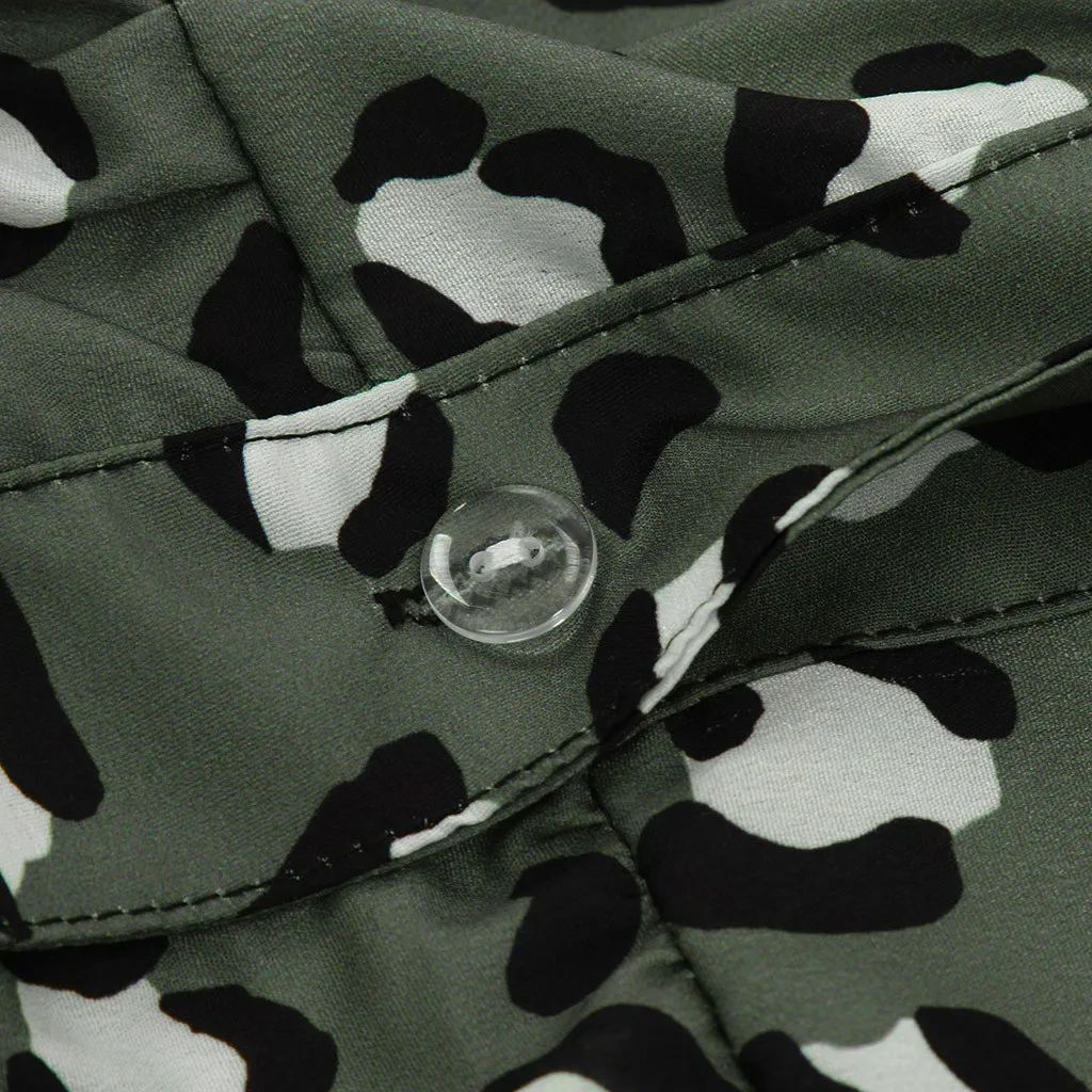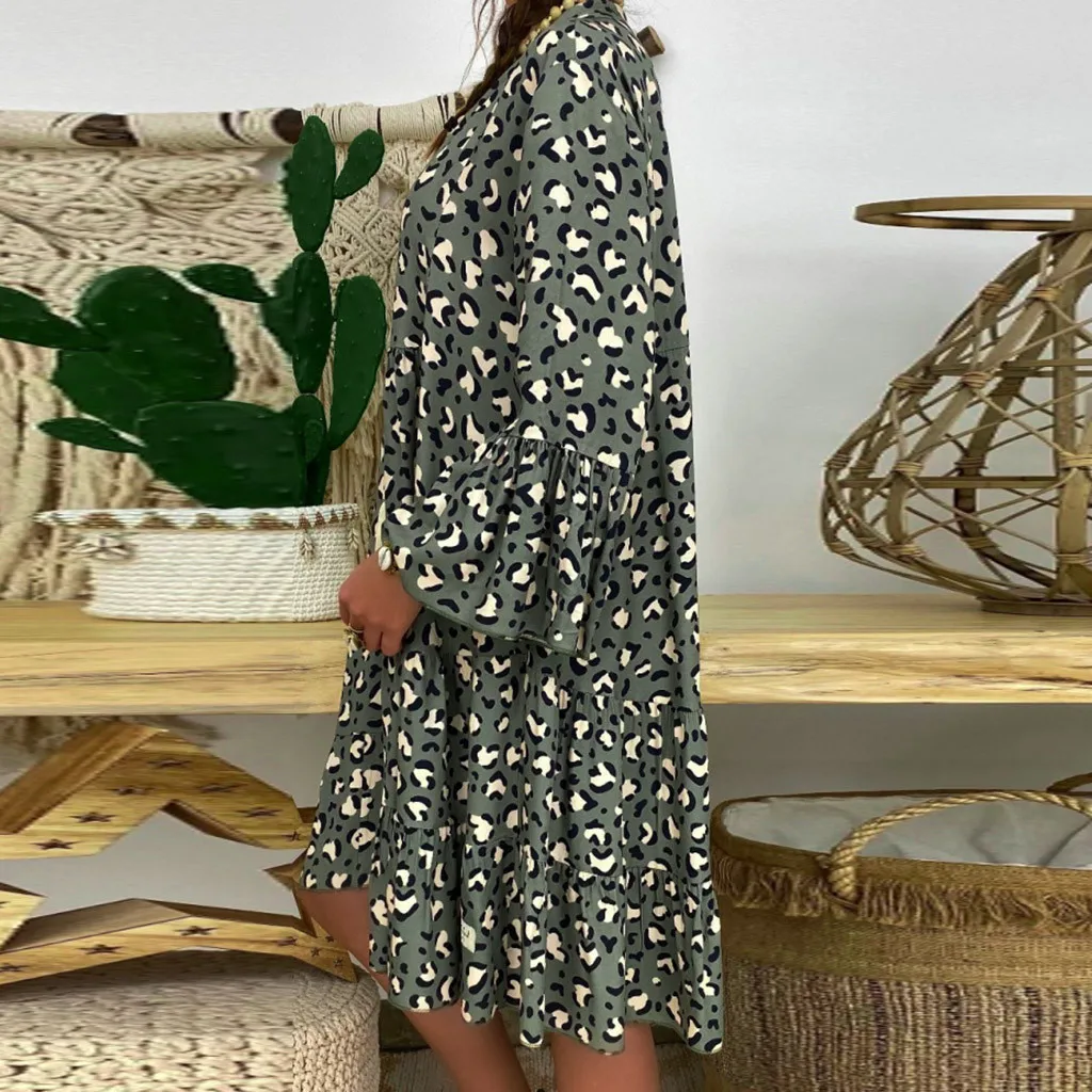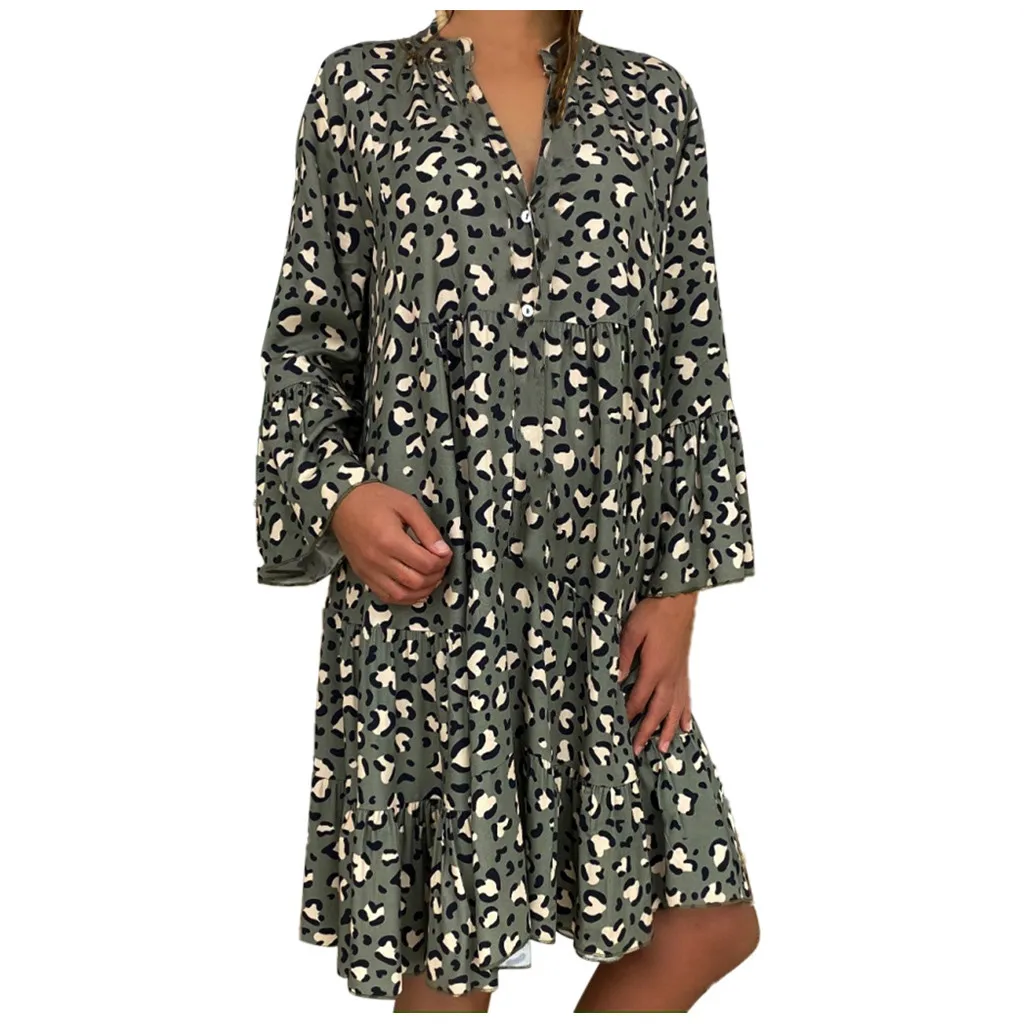 Платье женское размера плюс с длинным рукавом, свободное элегантное мини-платье в стиле бохо, с V-образным вырезом, на пуговицах, с принтом