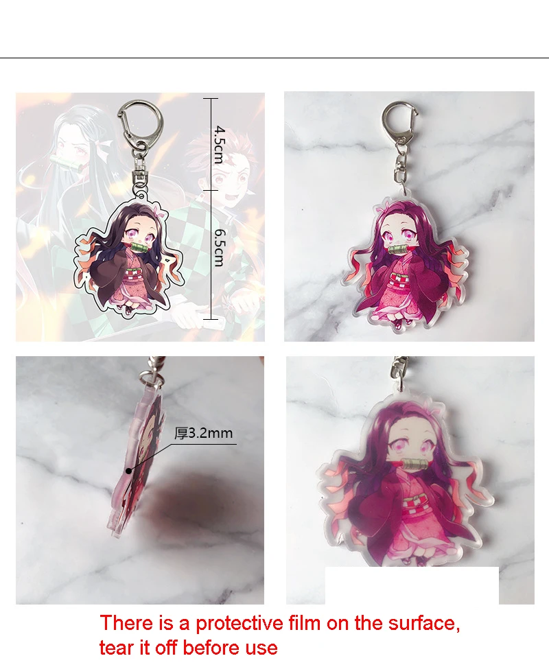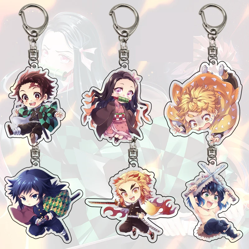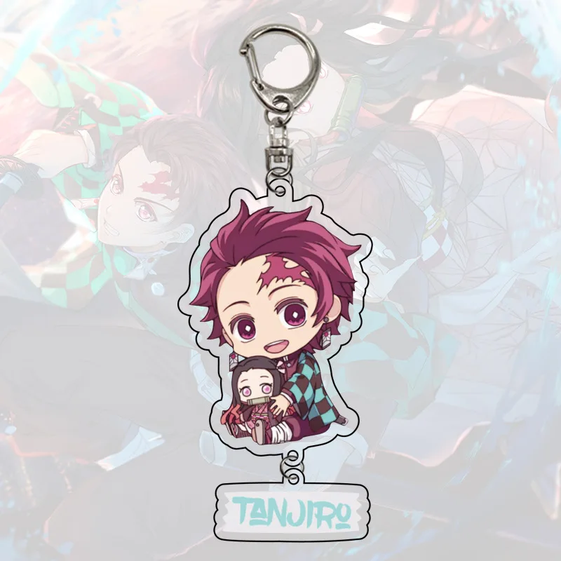 Милый брелок для ключей из аниме рассекающий демонов Kimetsu no Yaiba, брелок из акрила с кристаллами камадо, незуко, камадо-таньцзиру, агатсума, подвеска-кольцо
