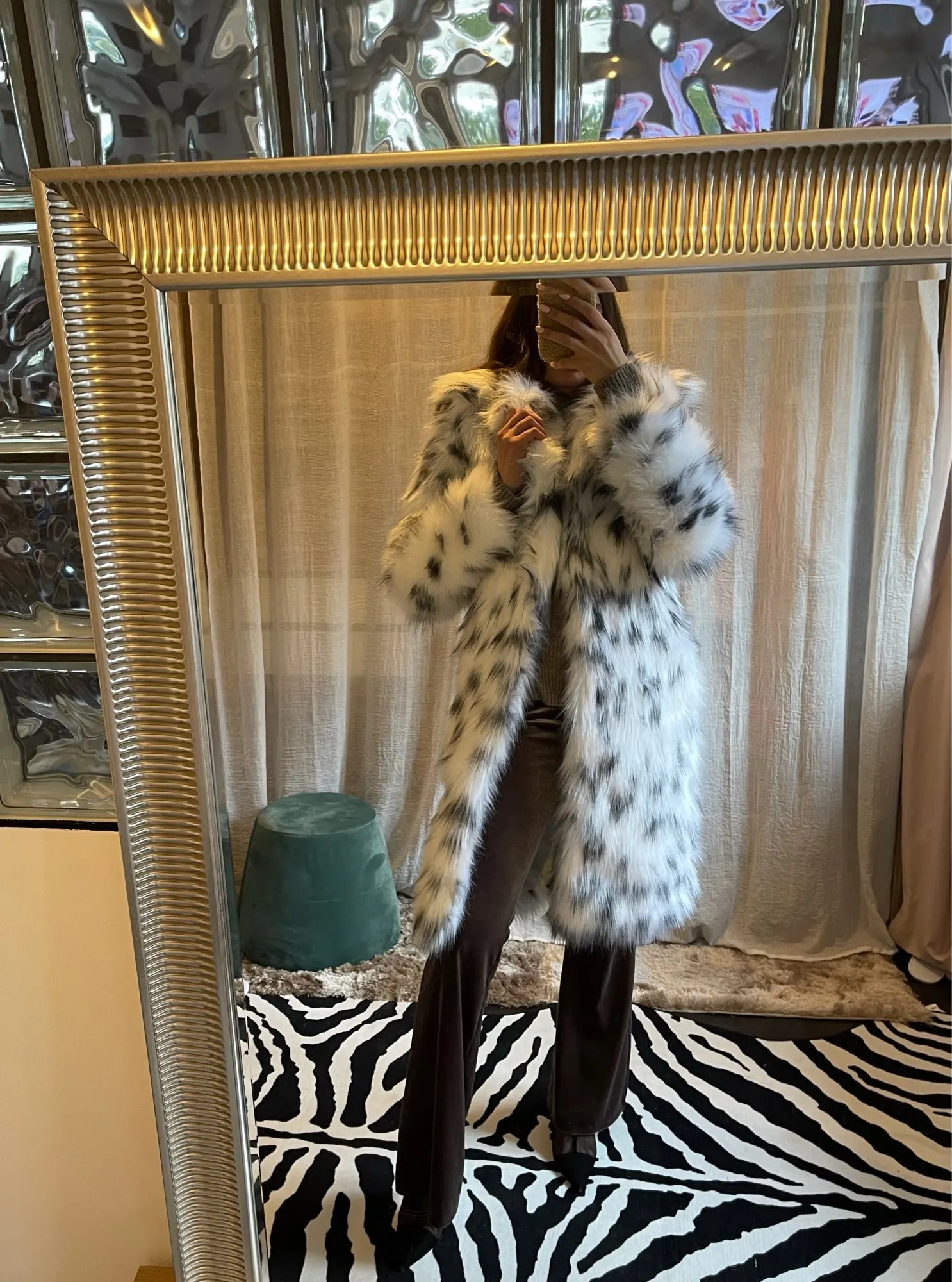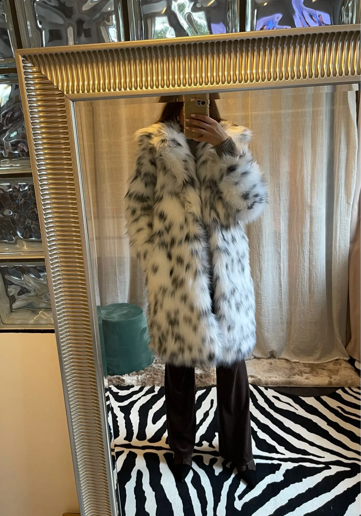 Женская Шуба из искусственного лисьего меха, зимняя теплая кожаная ветровка большого размера в черный горошек, с леопардовым принтом